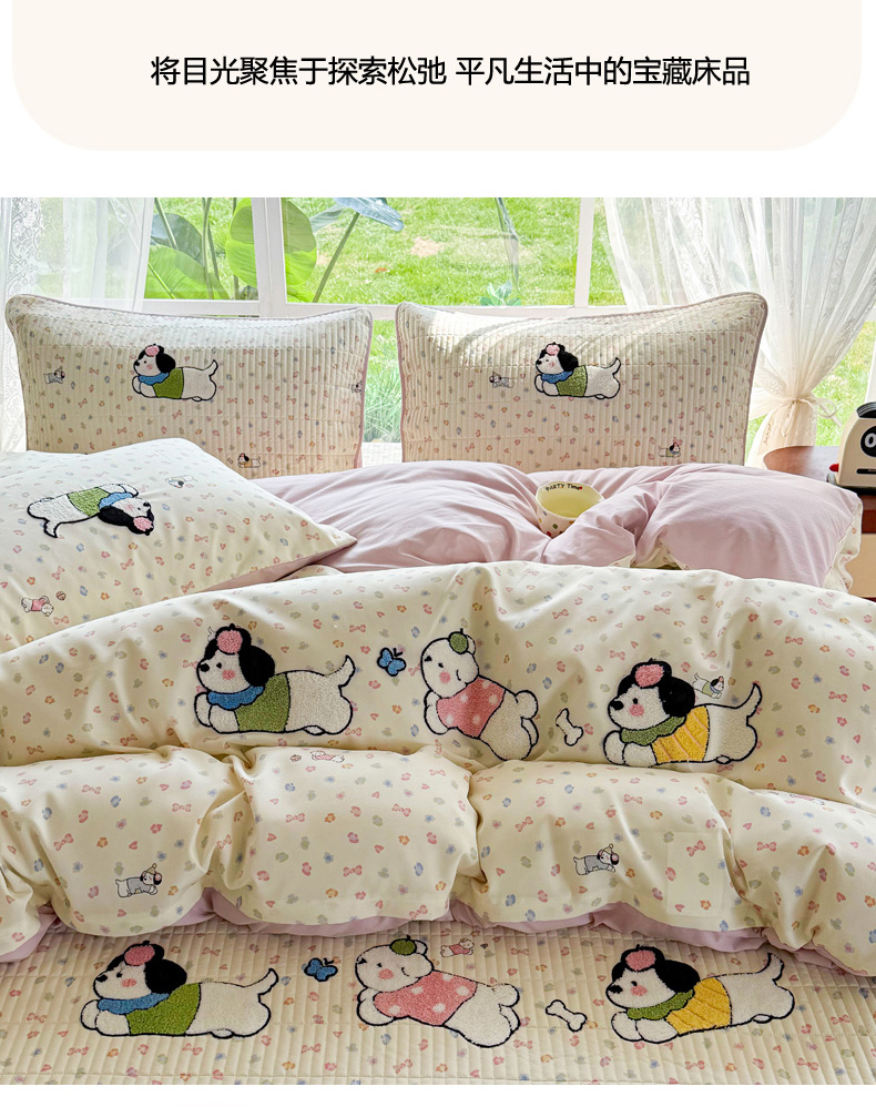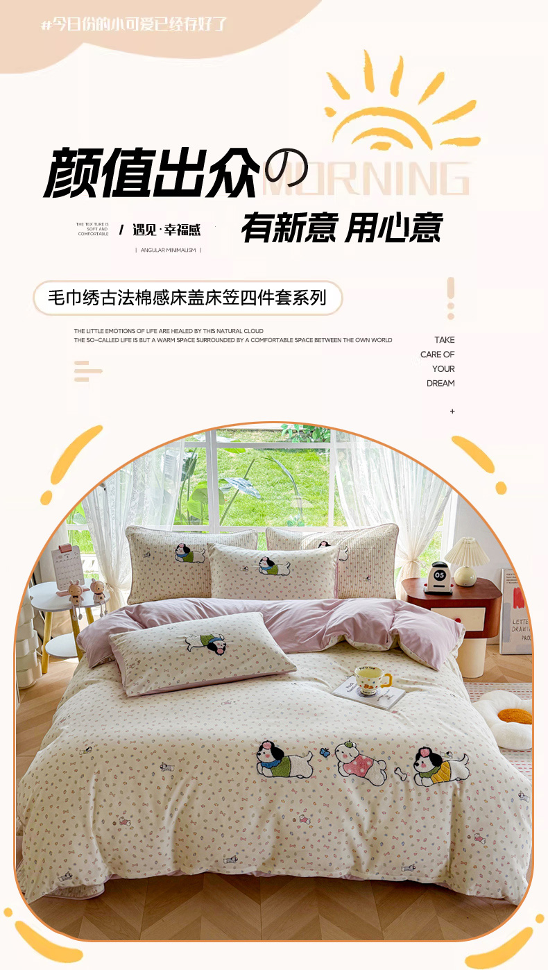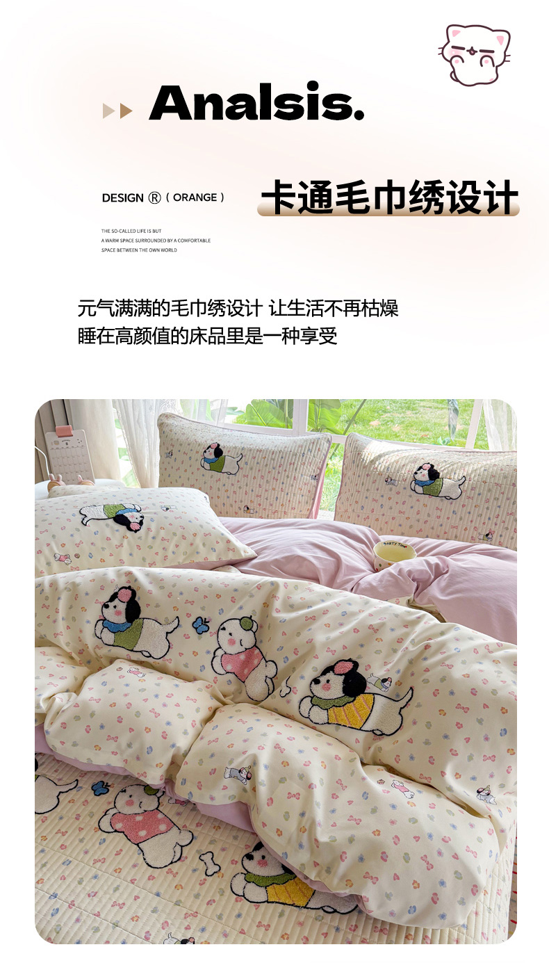 当前位置: 91家纺网 > 商品网购 > 床品套件 > 四件套 > 化纤普通四件套 > 恋佳居 2026新款毛巾绣古法棉床笠床盖四件套 软萌时光