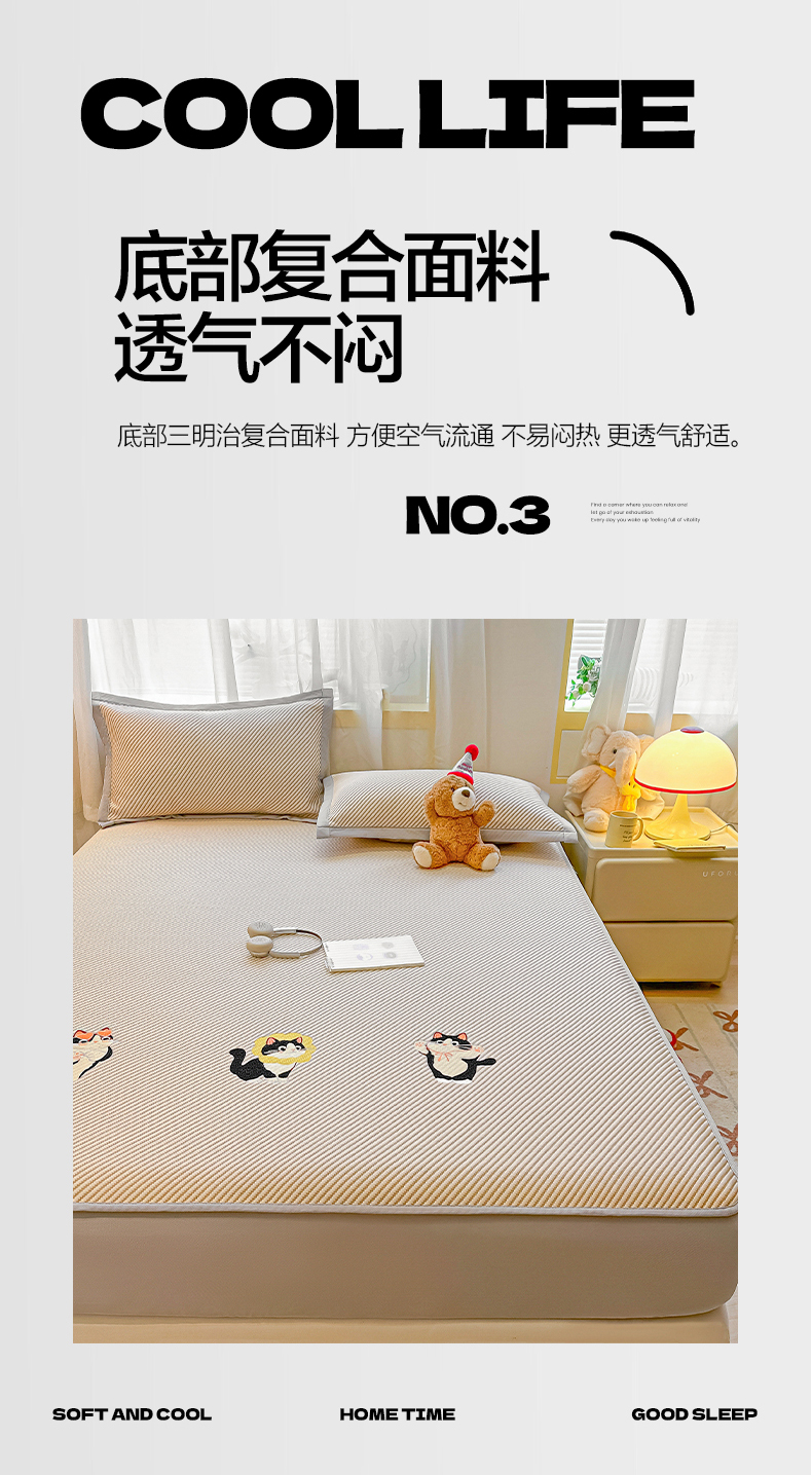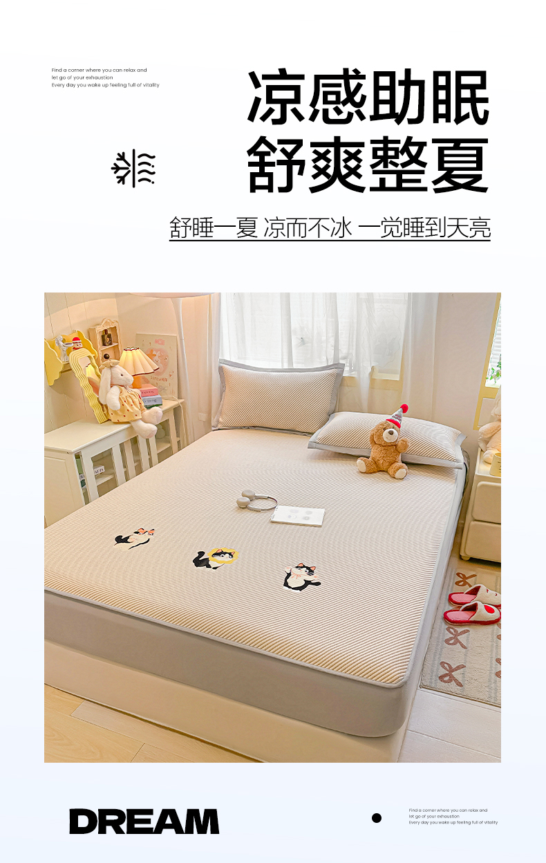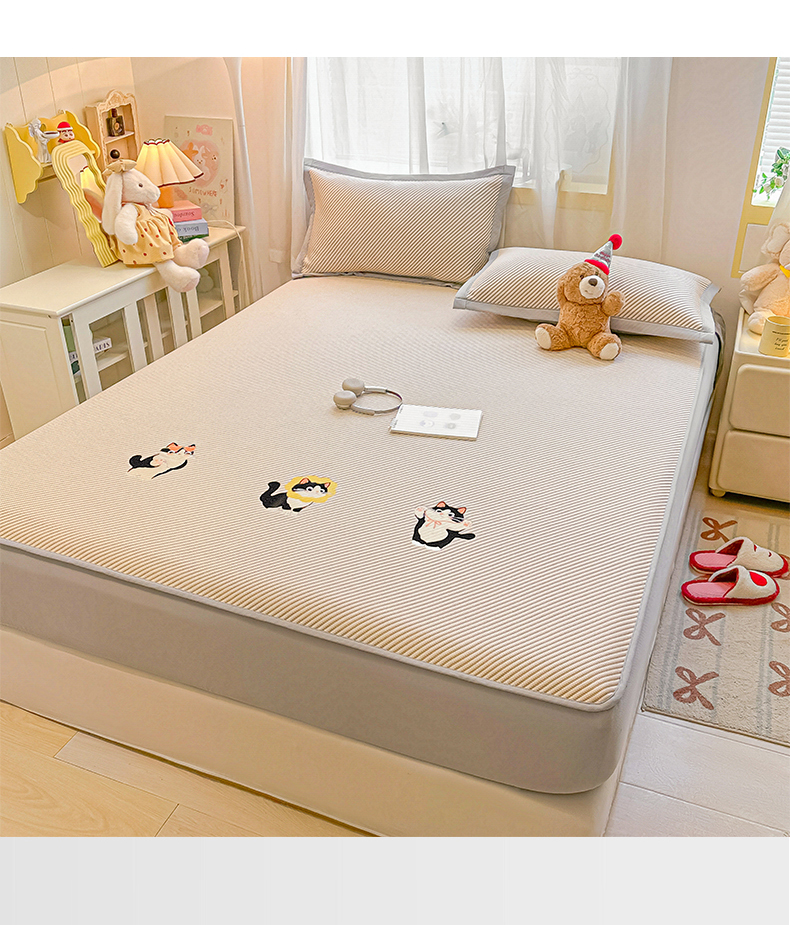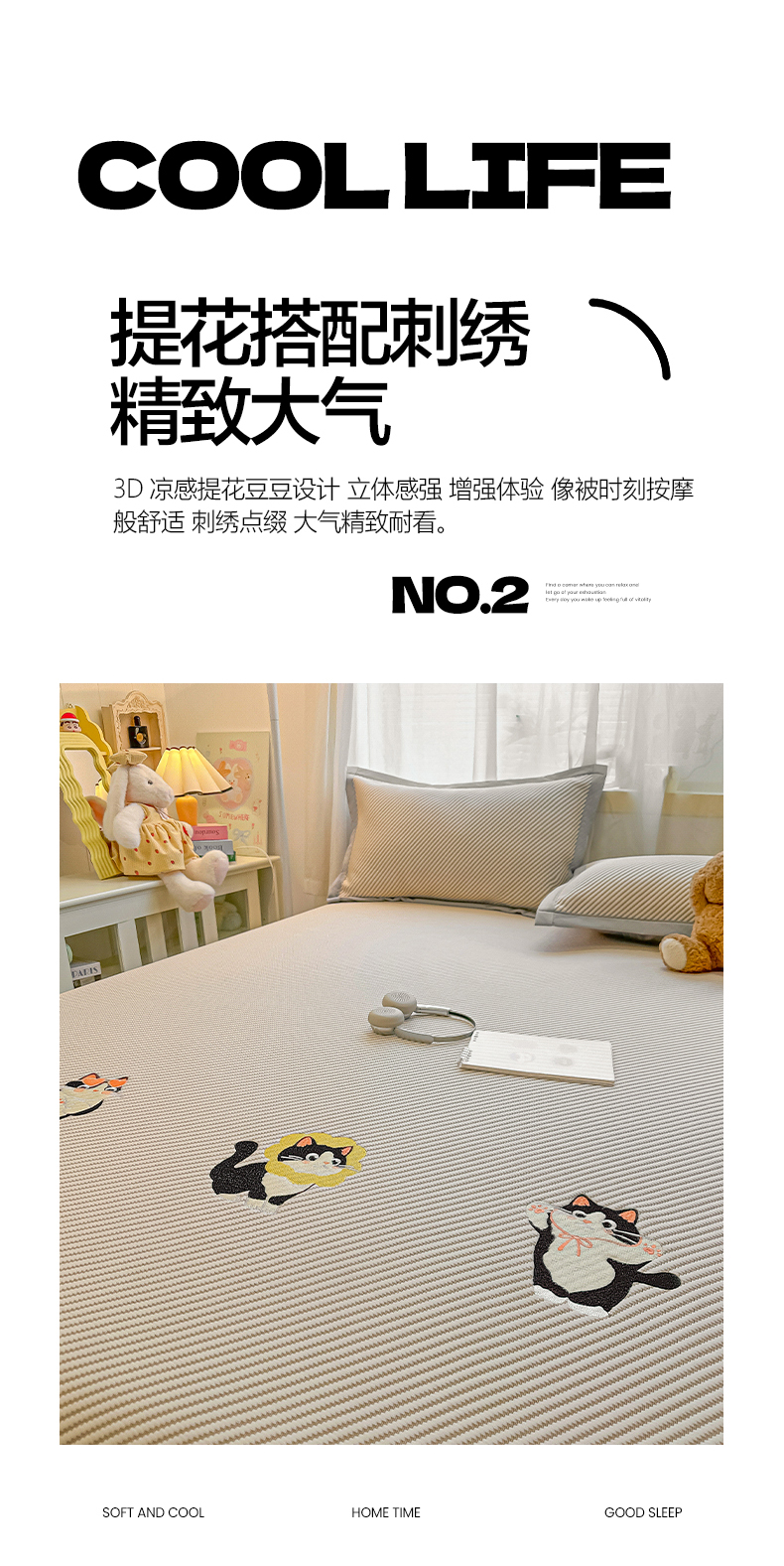 当前位置: 91家纺网 > 商品网购 > 床上用品 > 凉席 > 凉席套件 > 多乐家纺 2026新款PE提花斜纹凉感豆豆卡通刺绣大包边复合凉席 三只猫-香槟(床笠款)