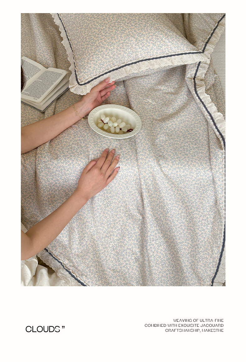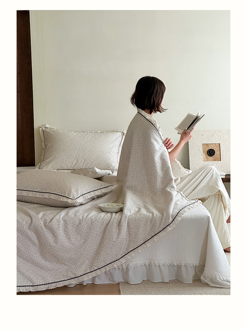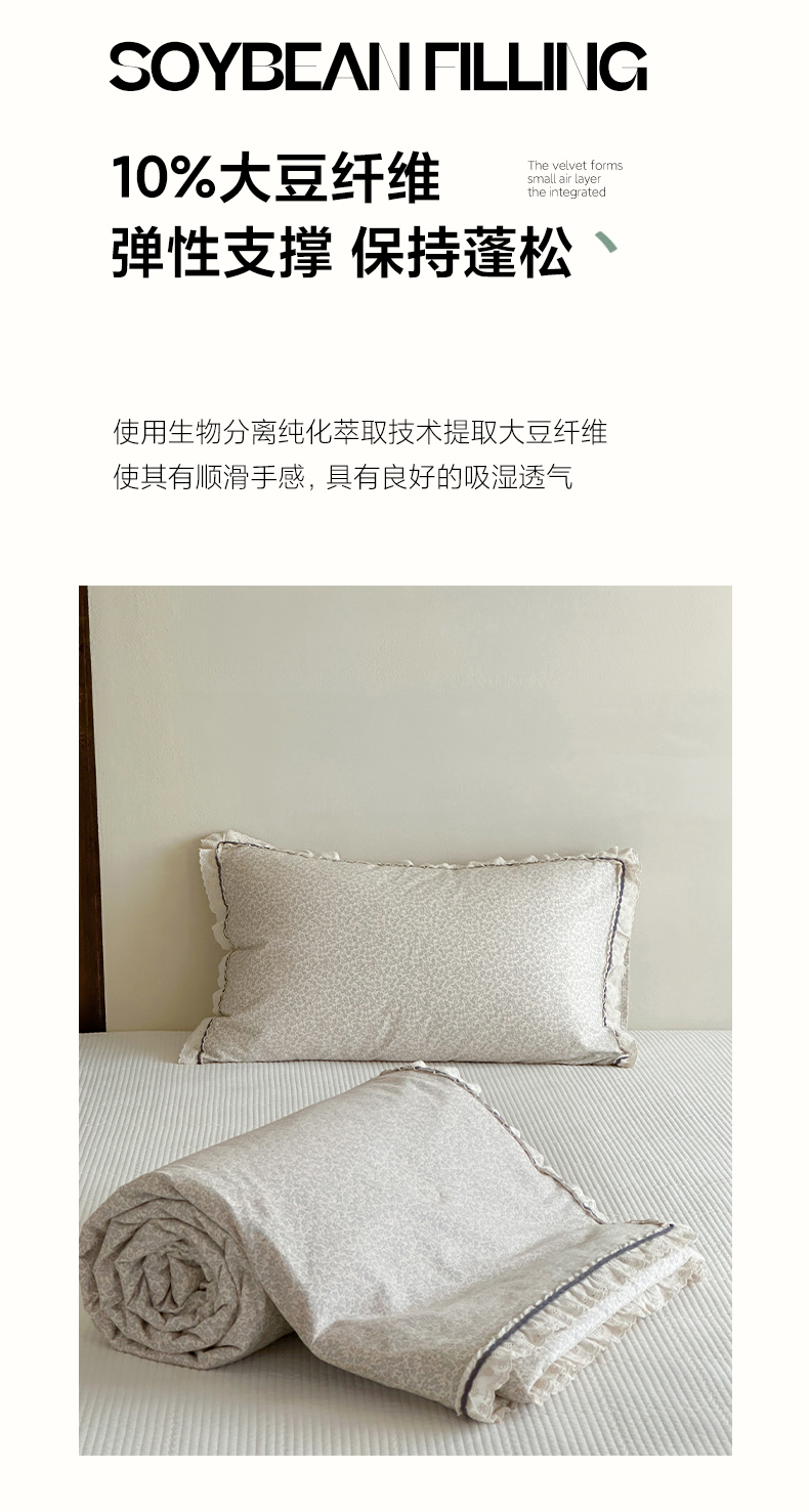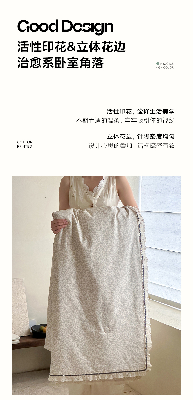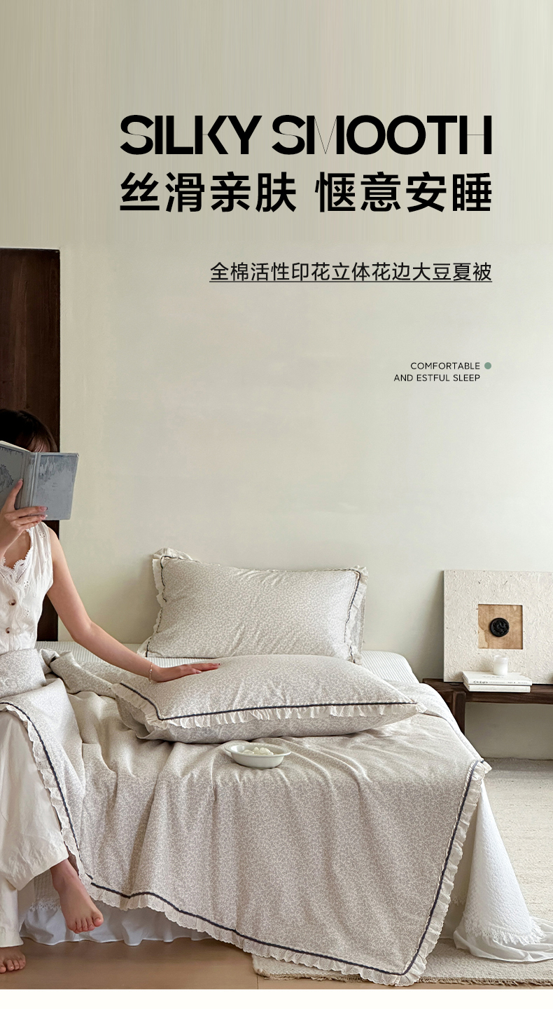 商品名称:一加一 2026新款全棉活性印花立体花边大豆夏被夏凉被空调被四件套 浅星纱