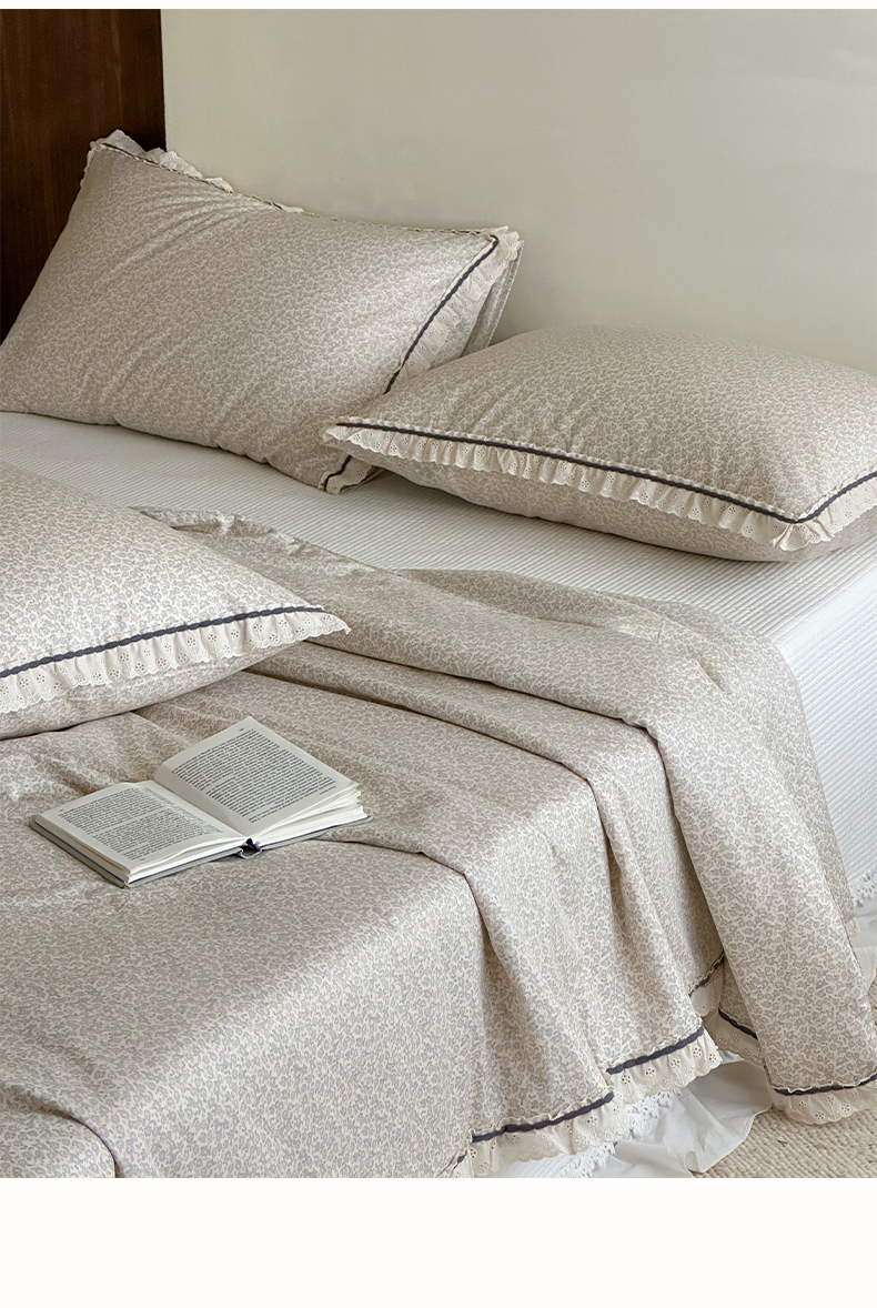 一加一 2026新款全棉活性印花立体花边大豆夏被夏凉被空调被四件套 浅星纱