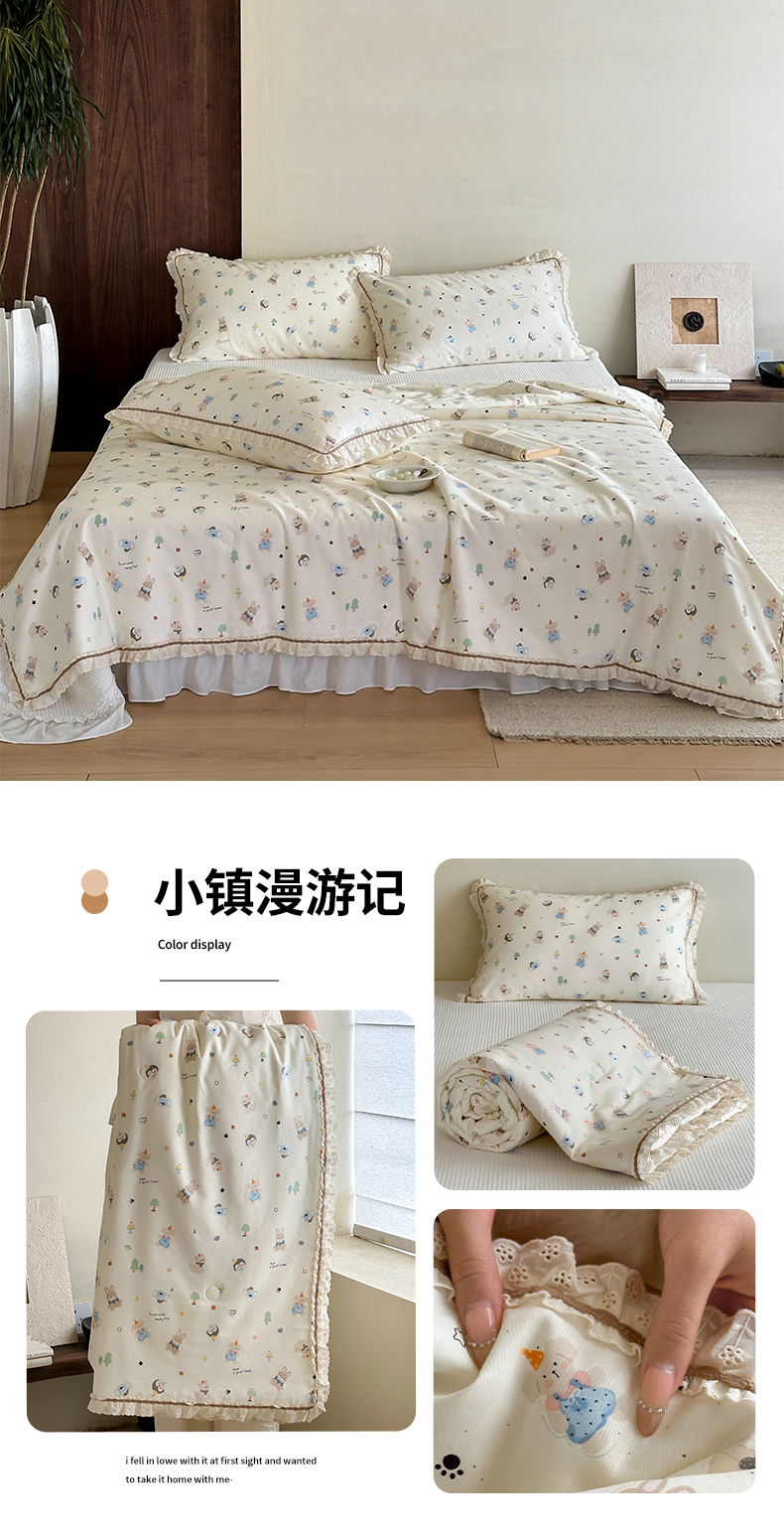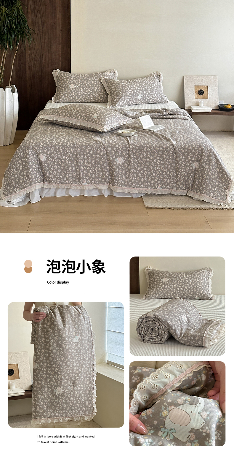 (总)一加一 2026新款全棉活性印花立体花边大豆夏被夏凉被空调被四件套,组合图仅供展示不可下单,绿芜汀,泡泡小象,浅茶春樱,浅纹蓝,浅星纱,蔷薇凝,微花耳耳,小镇漫游记,星花结,杏仁小熊仔