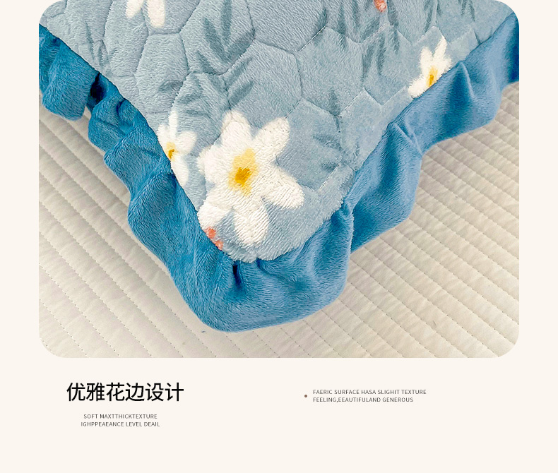 商品名称:莉迪娅 2026新款法兰绒花边枕套牛奶绒枕套韩版枕套 花与草蓝色