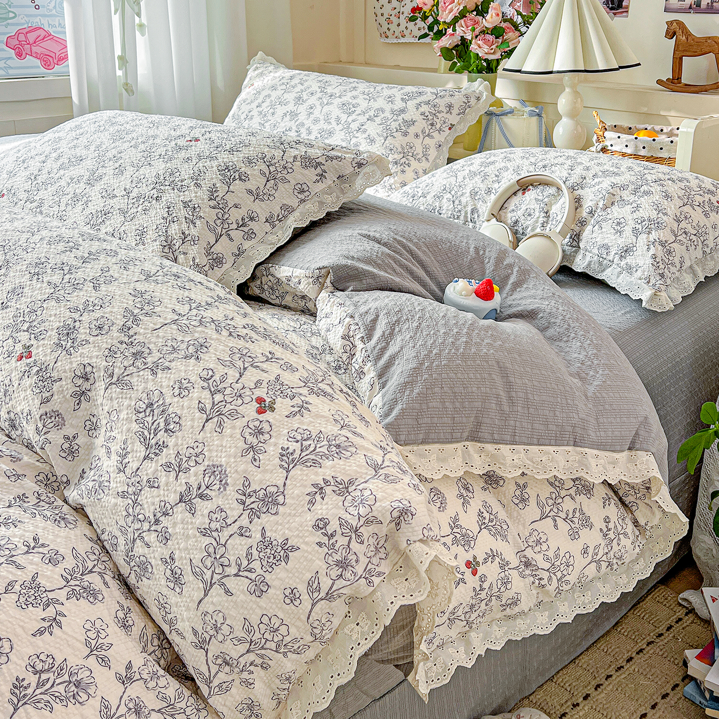 (总)瑞禾家纺 2026新款彩色花边木棉皱皱纱夏被四件套,阿吉豆,初心粉,初心蓝,扶摇,赫本,花间女孩,花漫漫,阑珊,罗卡,奶芙喵,甜心格格,午后花园,小马驹,邂逅,野餐兔,樱花季,悠然,紫烟