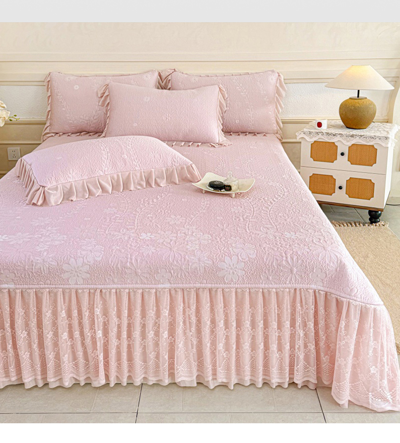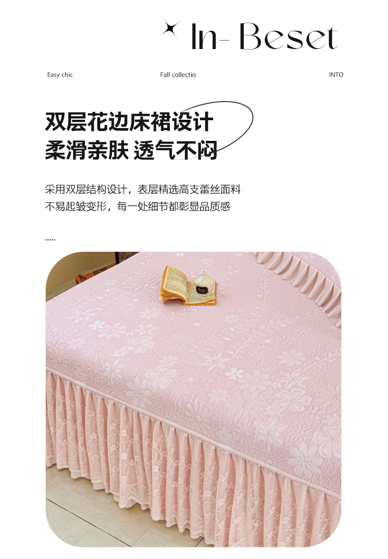 (总)金绣美居 2026新款PE高分子凉感席冰感床裙款三件套-安然影 (控价不低于199元),安然影-豆沙粉,安然影-蓝色,安然影-清水绿,安然影-紫色