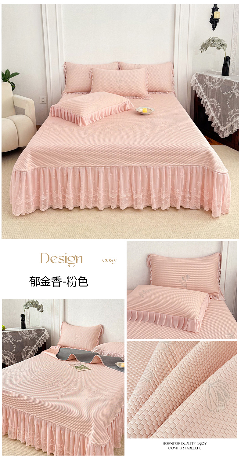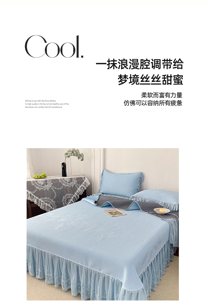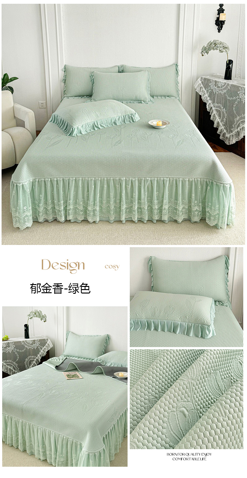 (总)金绣美居 2026新款PE高分子凉感席冰感床裙款三件套-安然影 (控价不低于199元),安然影-豆沙粉,安然影-蓝色,安然影-清水绿,安然影-紫色