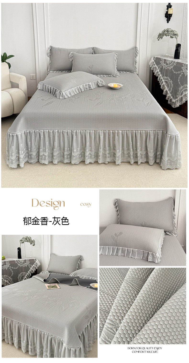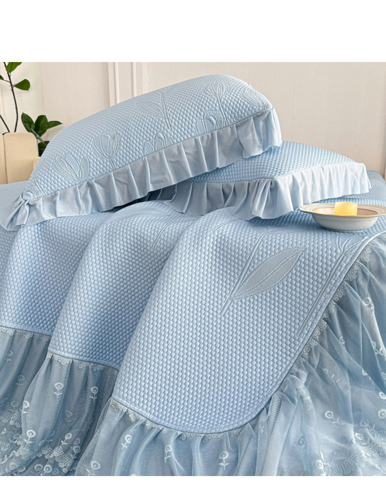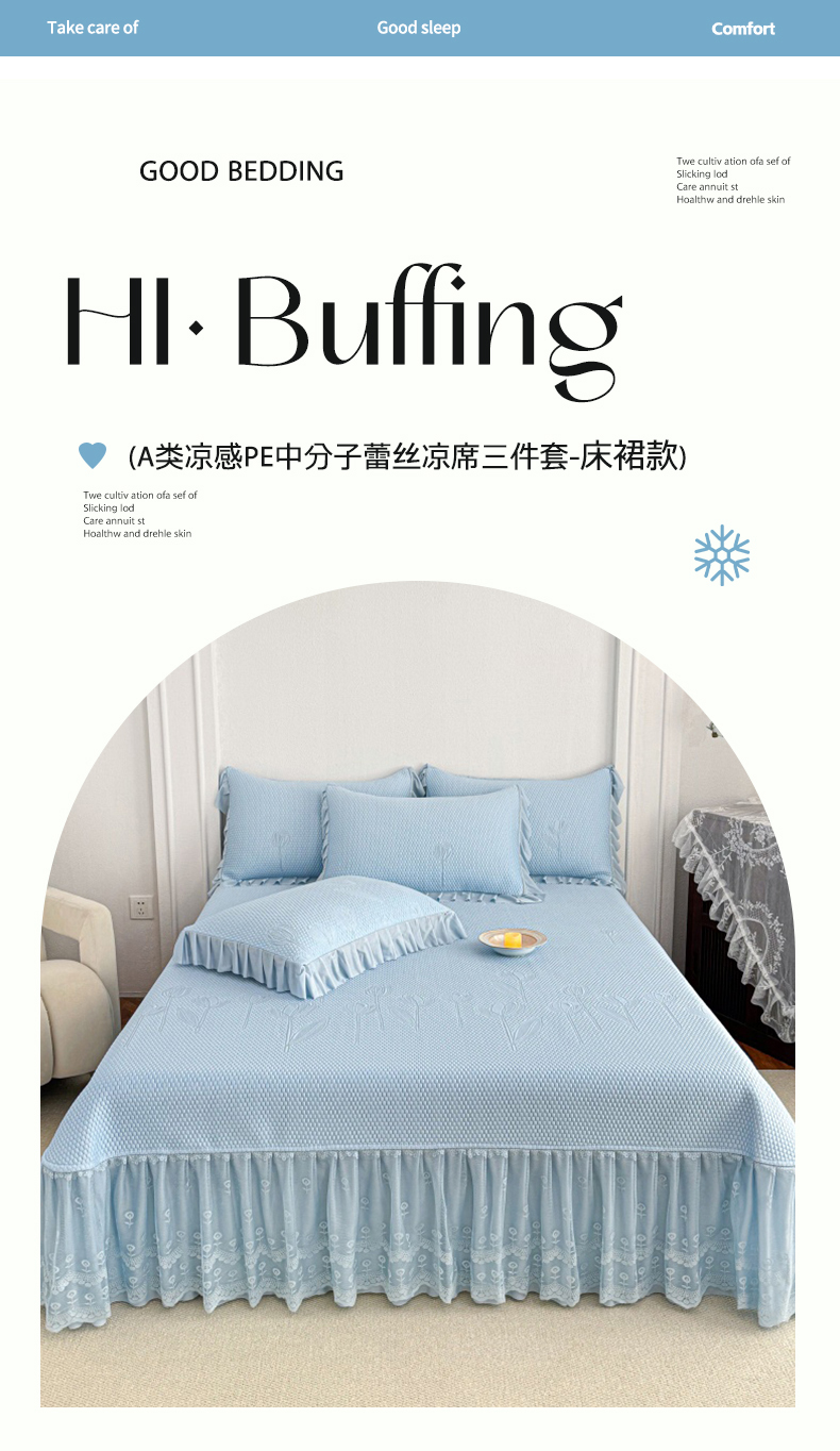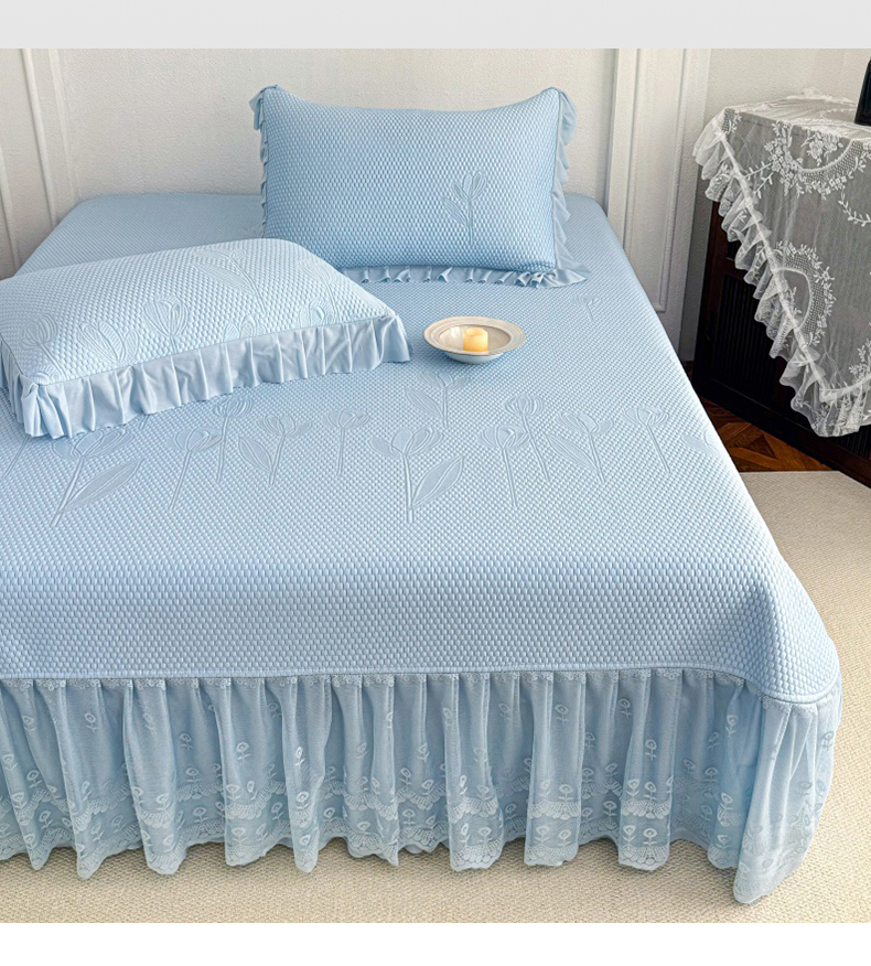 (总)金绣美居 2026新款PE高分子凉感席冰感床裙款三件套-安然影 (控价不低于199元),安然影-豆沙粉,安然影-蓝色,安然影-清水绿,安然影-紫色