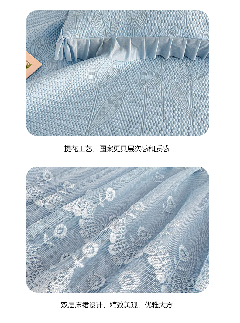商品名称:金绣美居 2026新款PE高分子凉感席聚乙烯冰感床裙款凉席三件套-七里香 七里香-蓝色