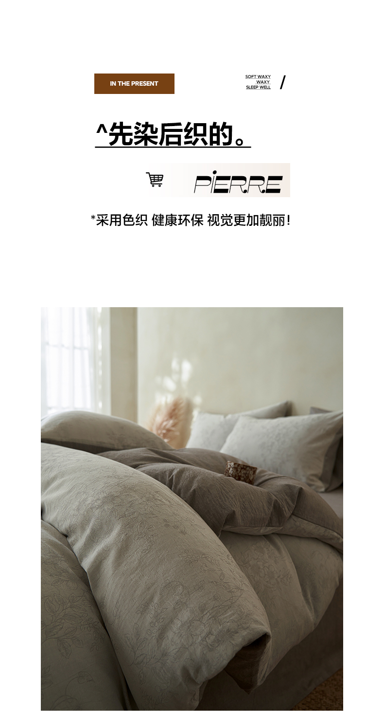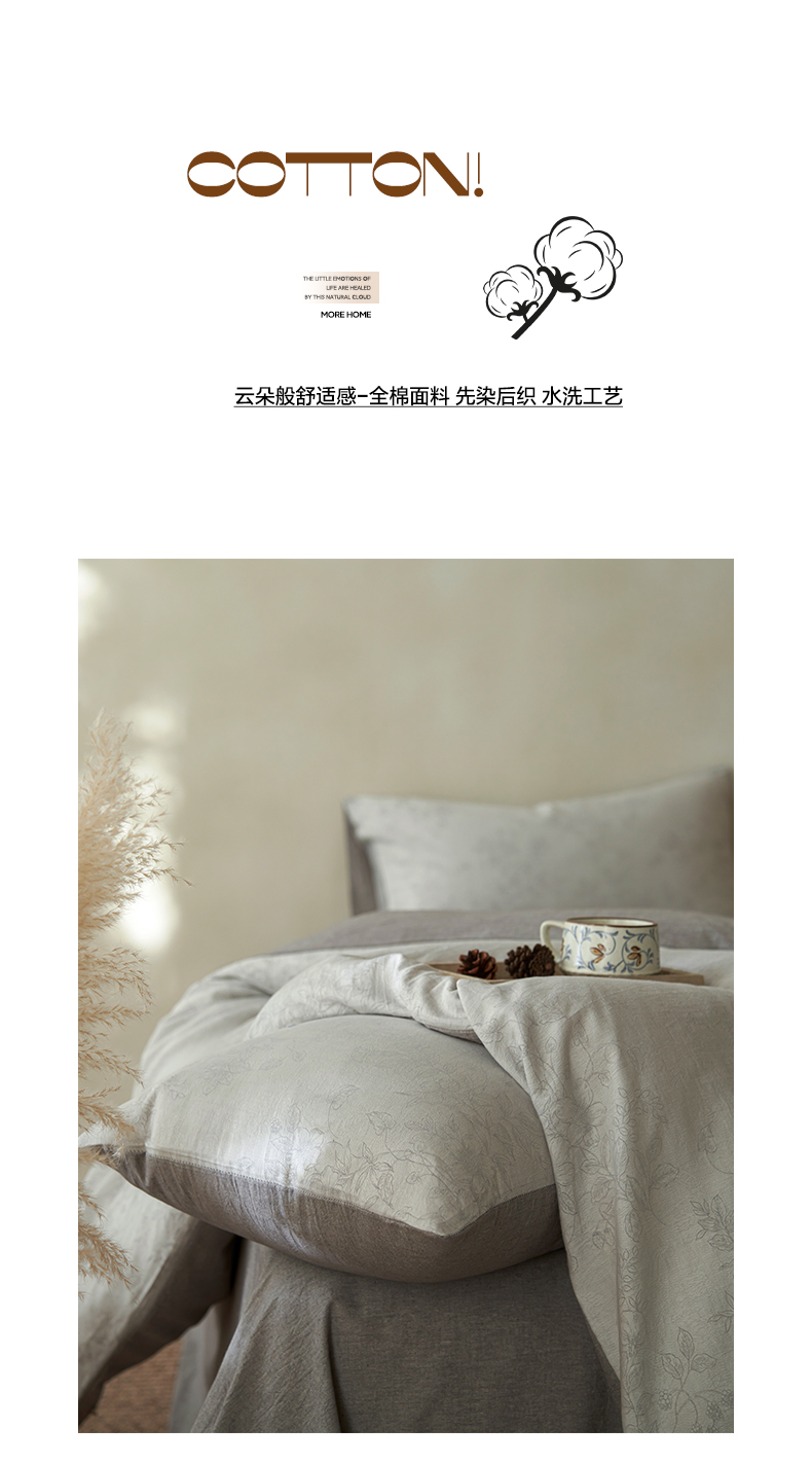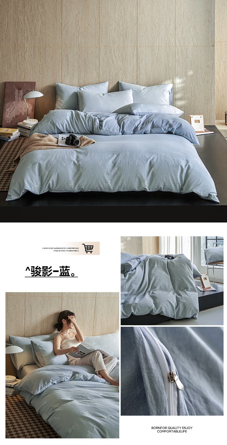 当前位置: 91家纺网 > 商品网购 > 床品套件 > 四件套 > 全棉普通四件套 > 如一 2026春夏新款色织提花全棉纯棉水洗棉四件套 花忆-灰