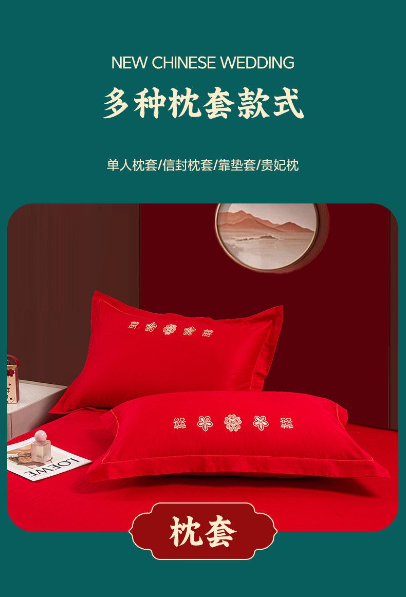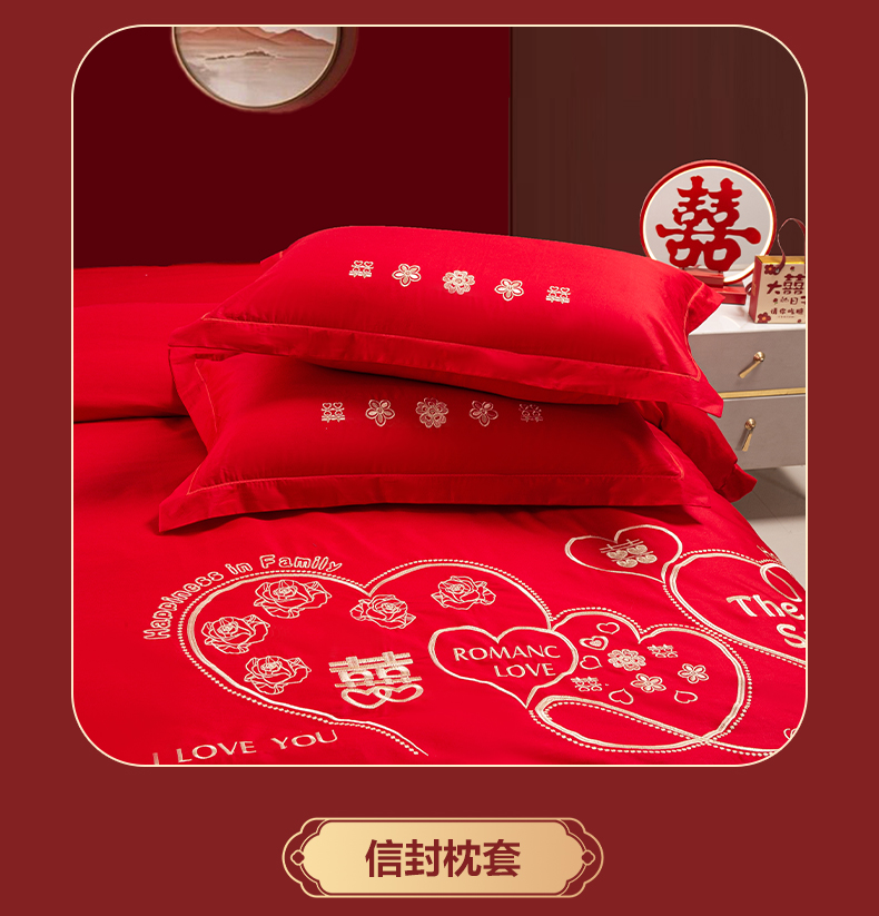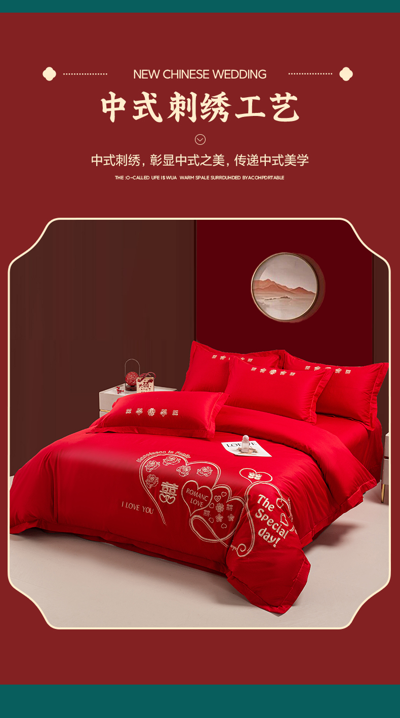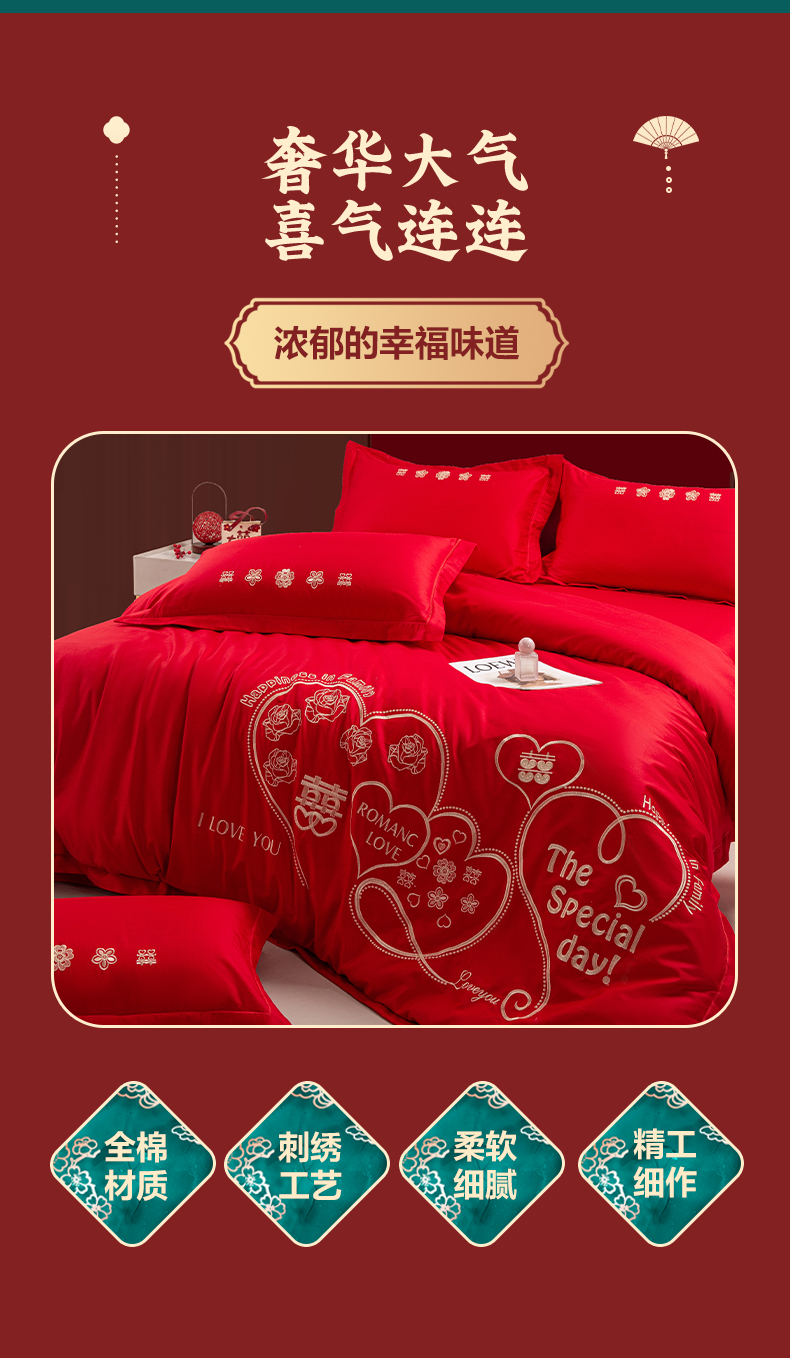 (总)银石 2024新款60新疆长绒棉大红婚庆绣花四件套,倾心一片,山河见证,心心相印,永结同心,浪漫时刻,吉祥如意,龙凤报喜