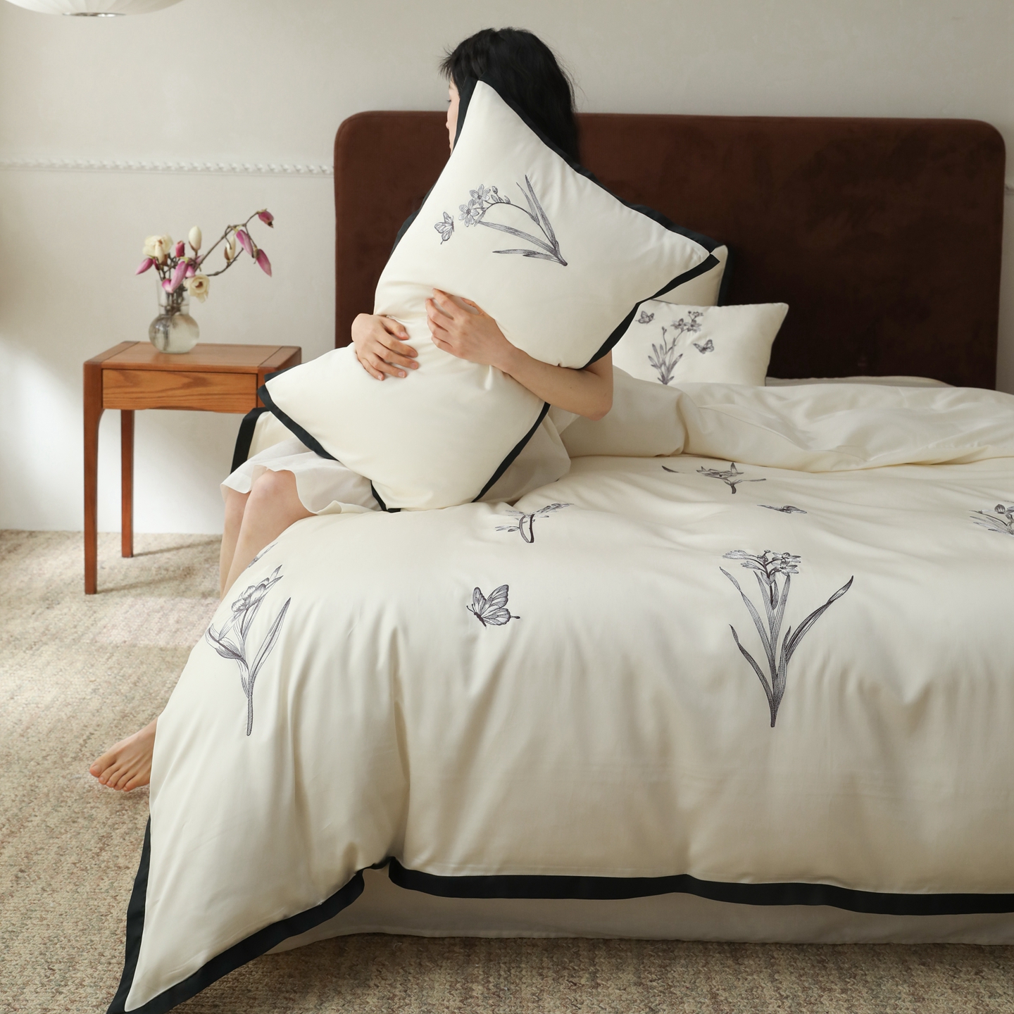 (总)初拾 2025新款全棉简约刺绣四件套-柏林,柏林-浅香槟,柏林-浅云蓝,柏林-雅灰粉