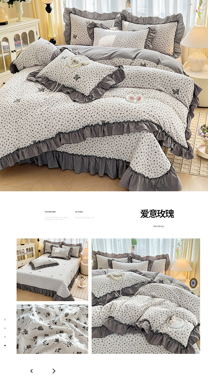 当前位置: 91家纺网 > 商品网购 > 床上用品 > 床盖 > 妮恒美 2026新款法式床盖款四件套 爱意玫瑰