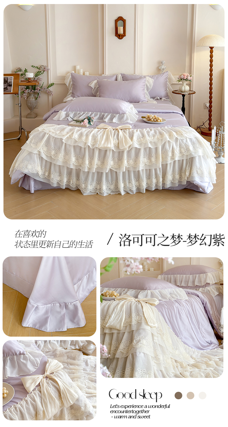 爱家(原缔乐家纺) 2026新款轻奢法式天丝夏被四件套 洛可可之梦-梦幻紫