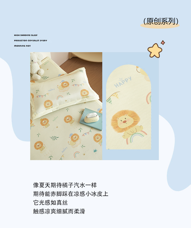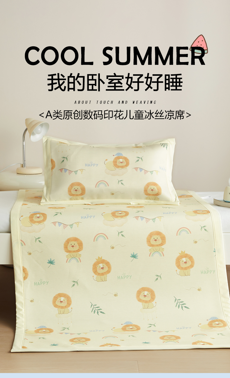 当前位置: 91家纺网 > 商品网购 > 床上用品 > 凉席 > 凉席套件 > 荷马之梦 2026新款凉席系列-A类母婴原创卡通数码印花儿童冰丝凉席 萌狮派对