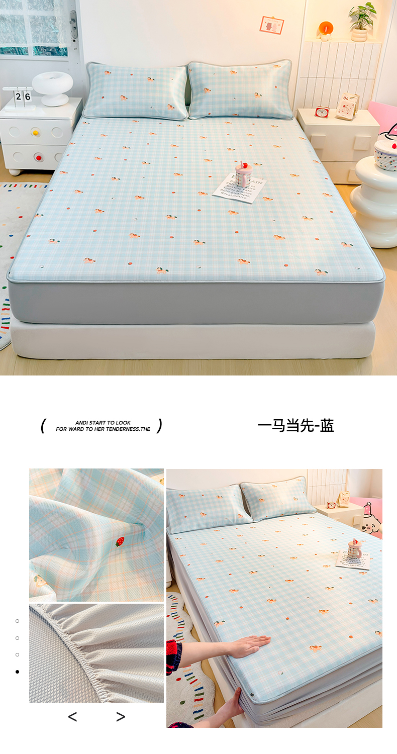 小萌虎 2026新款碳光冰丝凉席床笠款拍法一 一马当先-蓝
