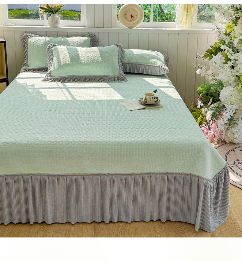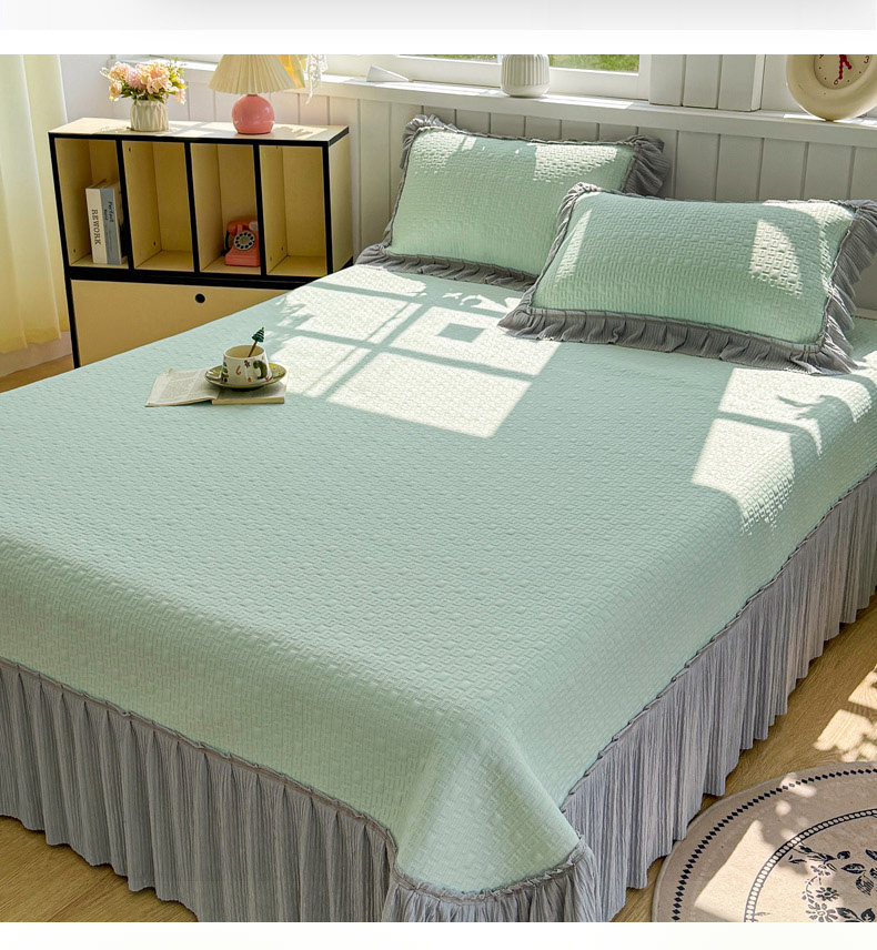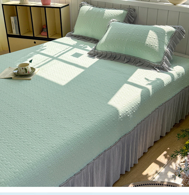 恋佳居 2026新款A类PE中分子凉感丝床裙凉席 冰沙银丝绿格