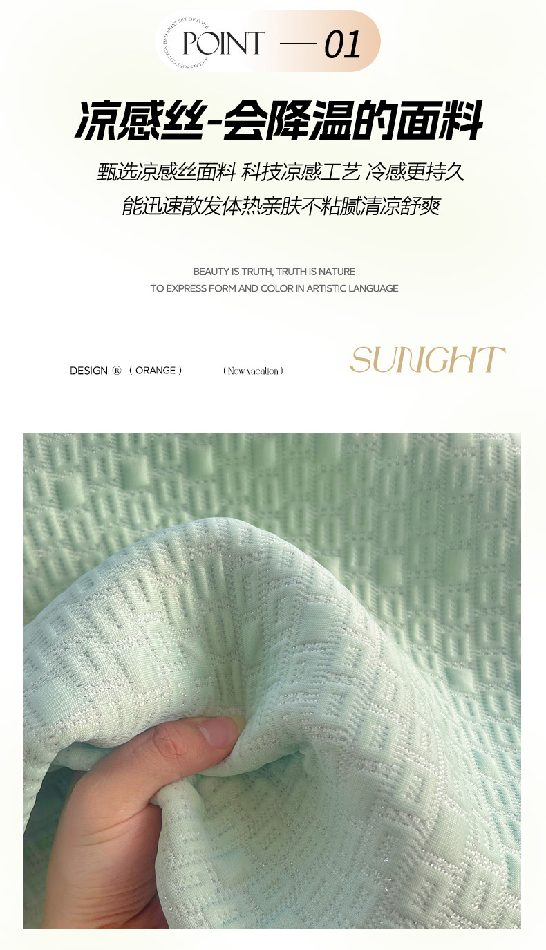 商品名称:恋佳居 2026新款A类PE中分子凉感丝床裙凉席 冰沙银丝绿格