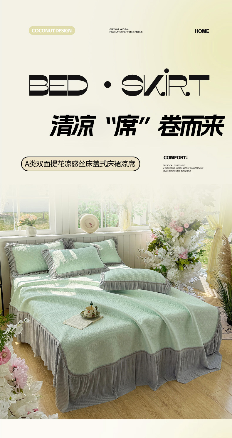 (总)恋佳居 2026新款A类PE中分子凉感丝床裙凉席,冰柔粉蔷薇,冰柔灰蔷薇,冰柔蓝蔷薇,冰沙银丝灰格,冰沙银丝蓝色,冰沙银丝绿格