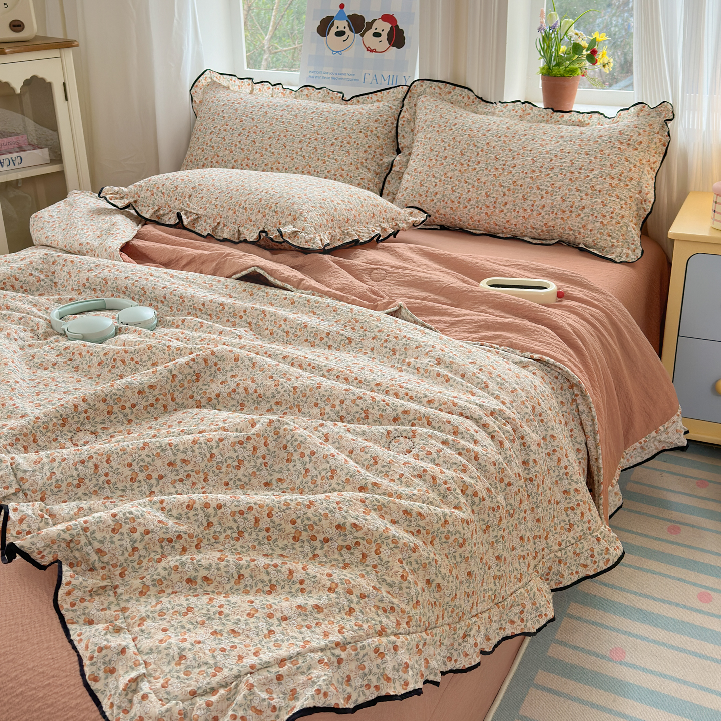 (总)德比尔斯 2026新款泡芙棉夏被四件套包边款,爱心草莓,爱心紫,春日花信,豆蔻紫,红莓瑶,鸿运小马,浆果,可爱熊猫,蓝花物语,马上有钱,奶酪星宝,手绘草莓,小马派对,樱桃小猫