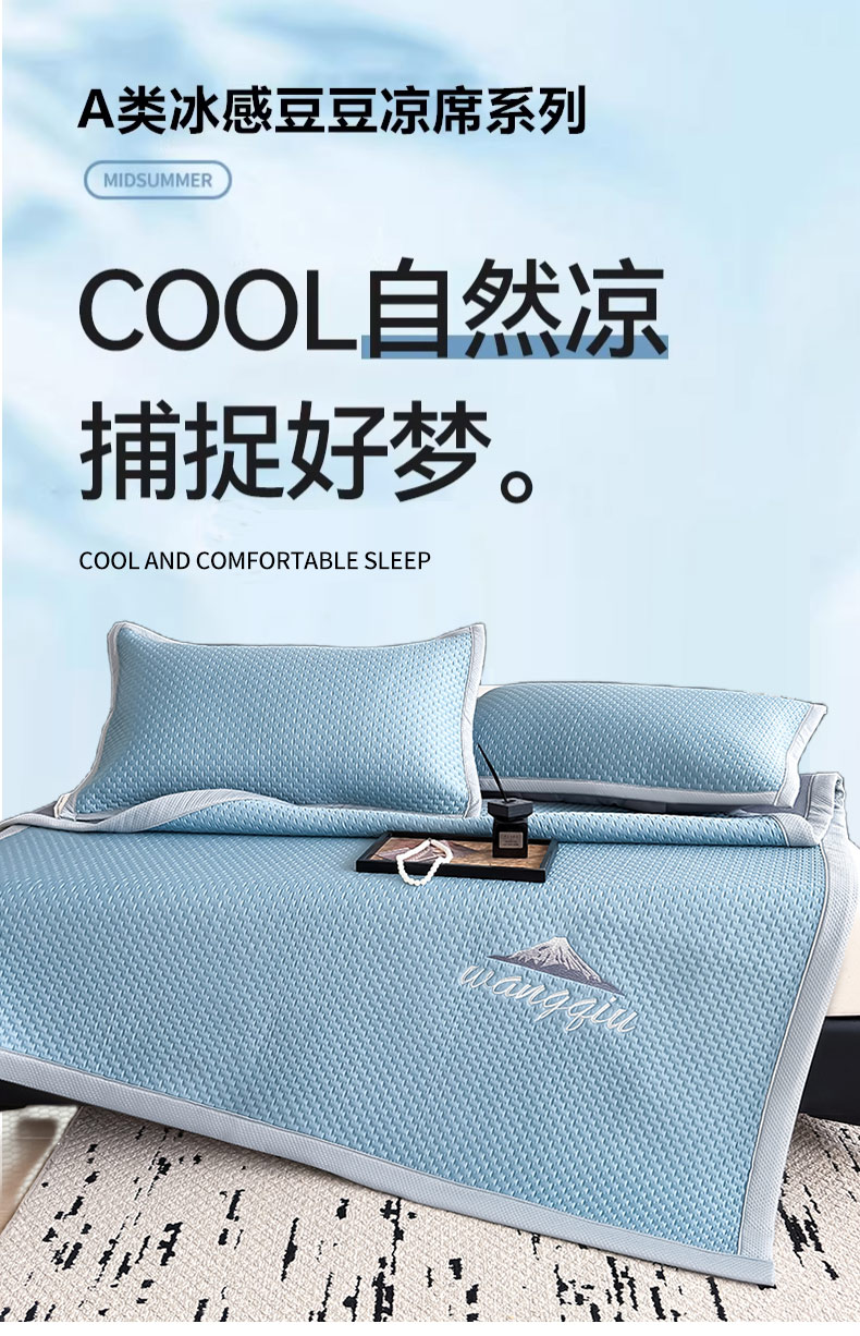 当前位置: 91家纺网 > 商品网购 > 床上用品 > 凉席 > 冰丝席 > 人人爱家纺 2026新款冰豆豆刺绣软凉席 富士山-水蓝