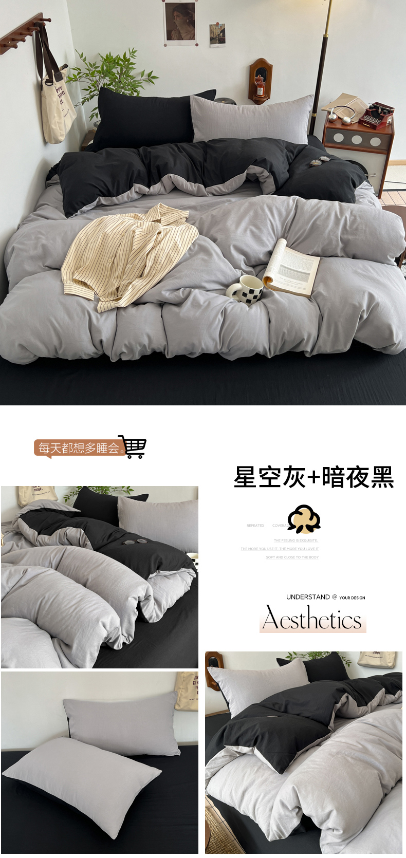 当前位置: 91家纺网 > 商品网购 > 床品套件 > 四件套 > 化纤普通四件套 > 梦嘉居 2026新款亲肤纯色AB版水洗皱皱棉四件套学生宿舍床单床笠三件套 星空灰+暗夜黑