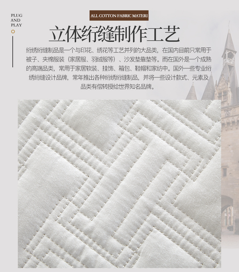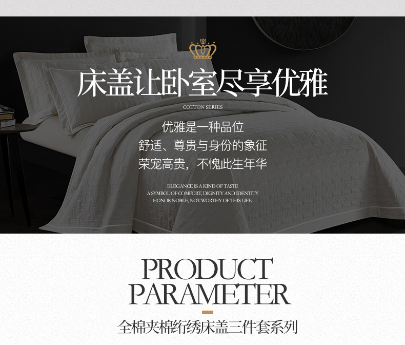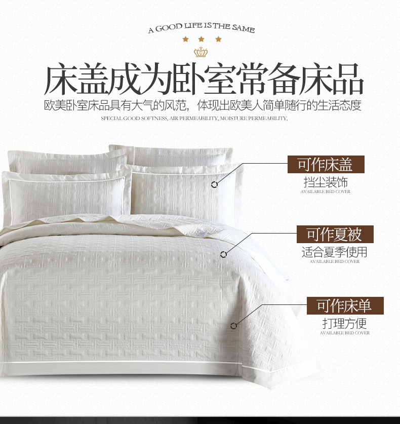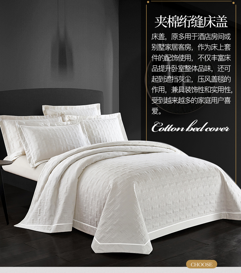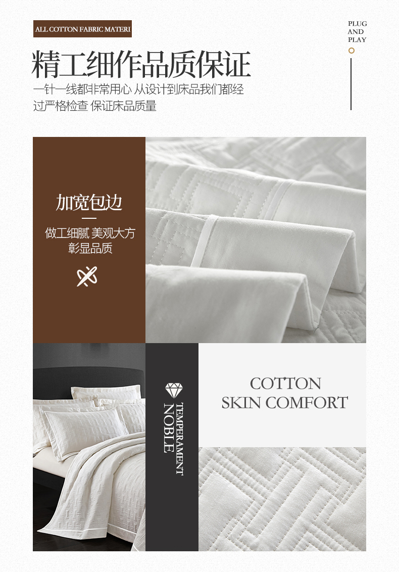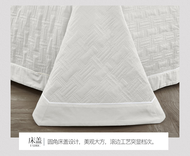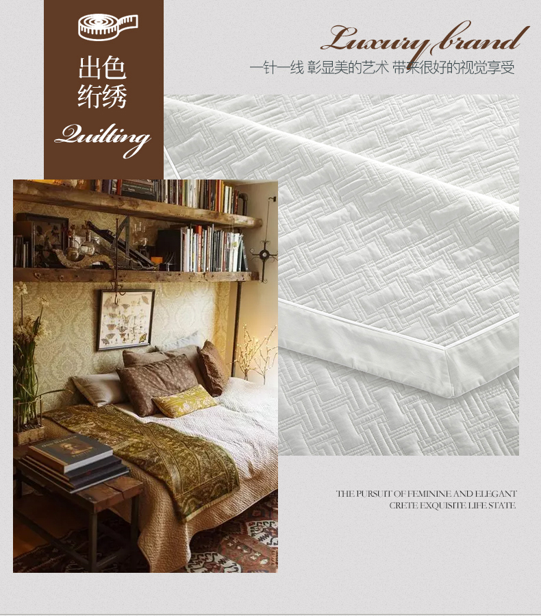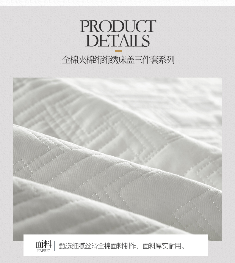 • 91家纺网 家纺一手货源 找家纺 优乐家纺 2026新款双面全棉斜纹绗绣加厚床盖(夏被加厚保暖床单)唐顿系列三件套 唐顿-情迷白