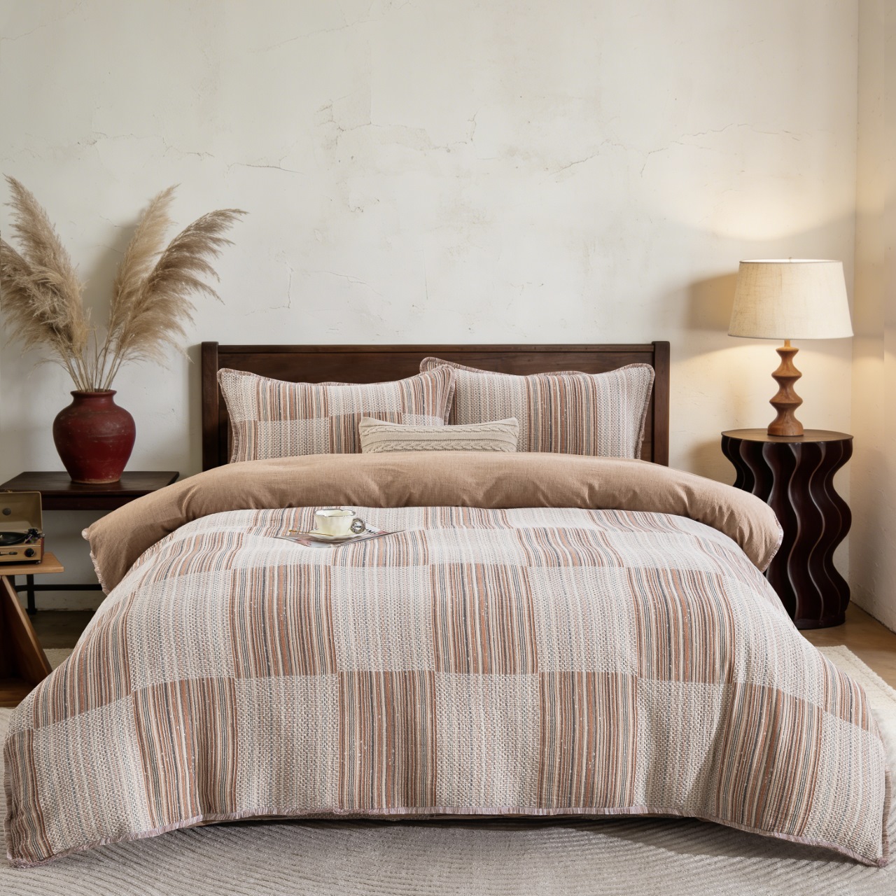 (总)仰望棉麻双层纱供应链 2026新款全棉纯棉色织水洗棉床盖三四件套,艾格-咖+小密格-灰,艾格-深灰+小密格-粉,艾维斯-粉+小密格-粉,艾维斯-咖+小密格-咖,艾维斯-蓝+小密格-粉,达乐-蓝+小清香-粉,格律-粉+小密格-粉,格律-灰+小密格-粉,格律-绿+小密格-咖,米亚-粉+小密格-灰,米亚-灰+可爱多-蓝,米亚-绿+小密格-绿