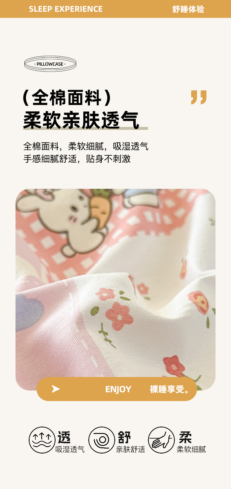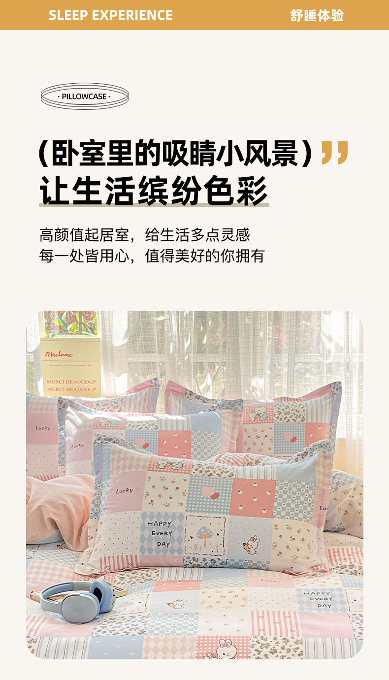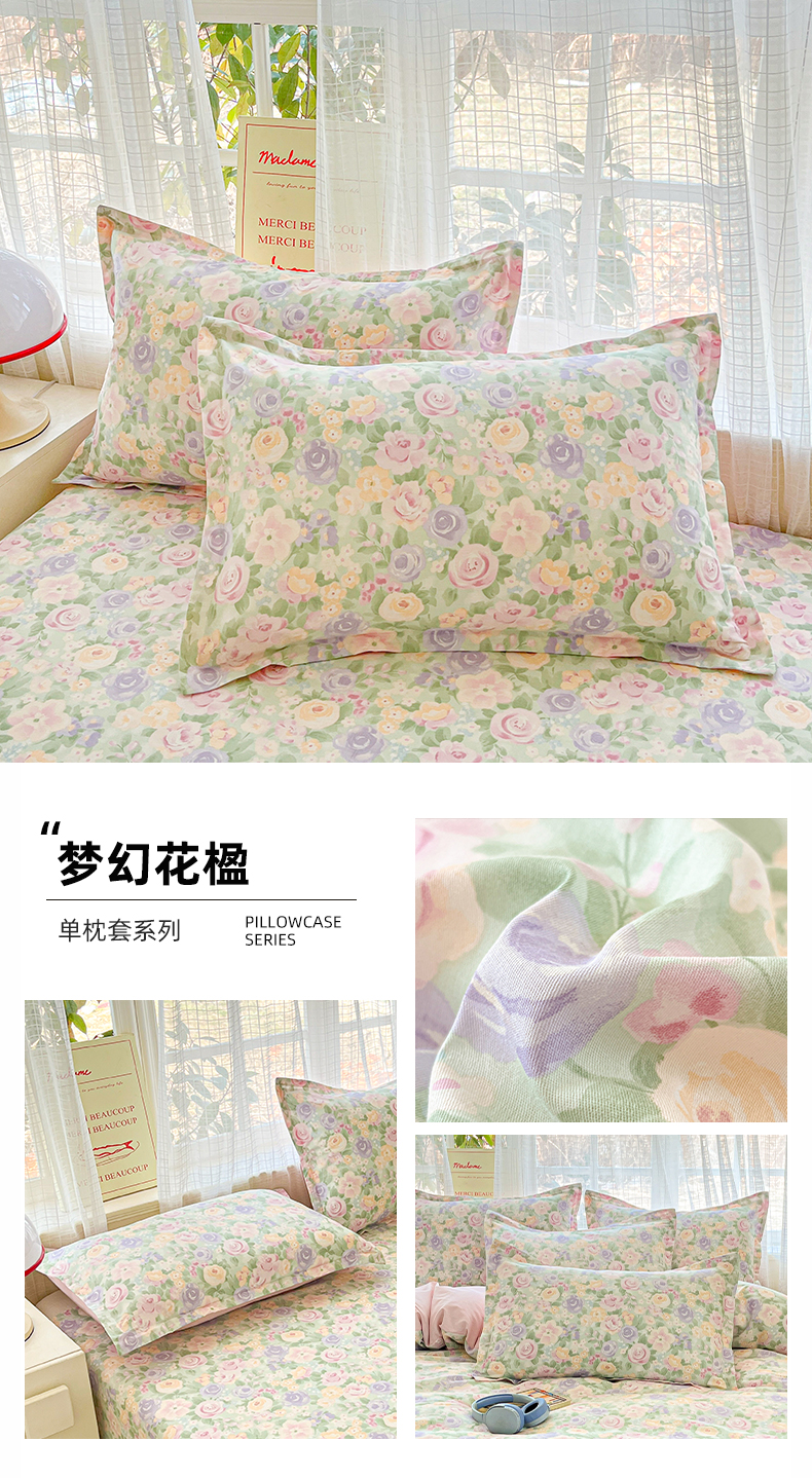 商品名称:(总)好亿来家纺 2026新款全棉纯棉印花小清新单枕套枕套单件