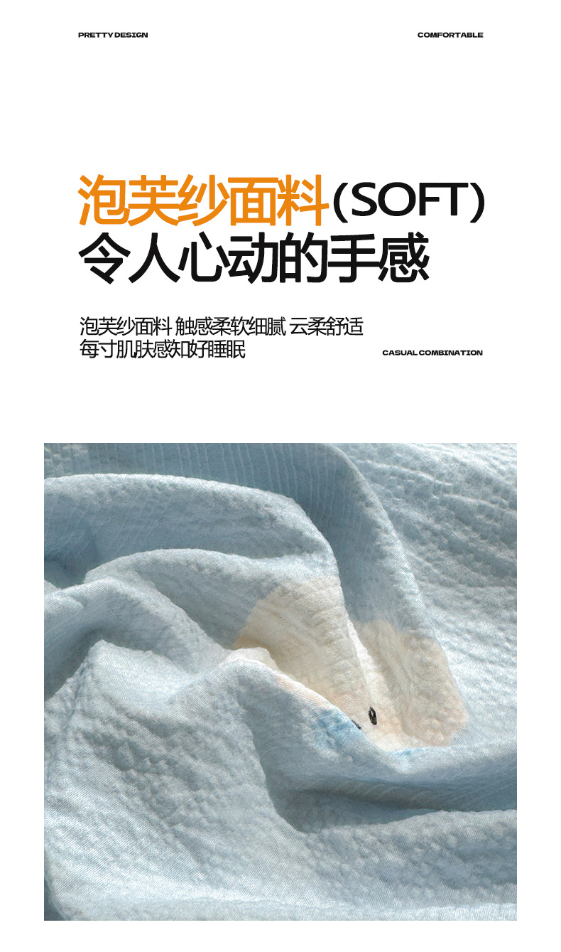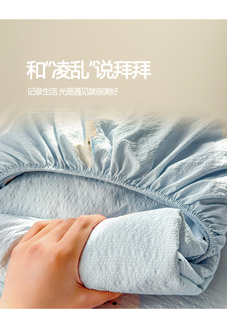 商品名称:(总)梵朴 2026新款A类泡芙棉云感木棉邹邹纱双层纱床笠三件套