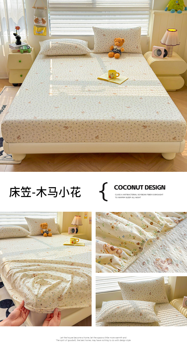 (总)梵朴 2026新款A类泡芙棉云感木棉邹邹纱双层纱床笠三件套,豹纹泡芙狗,花从小兔,花季紫,蝴蝶结小兔,酒渍櫻桃,春日花语,璀璨星空,费尔岛木马,快乐马里奥,快乐小狗,蓝调爱心,蓝色领结狗,猫咪蓝,萌宠,木马小花,暖檣枝,泡芙KT-绿,泡芙KT-紫,甜品萌狗,星星玩偶黄,星星玩偶紫,紫花免
