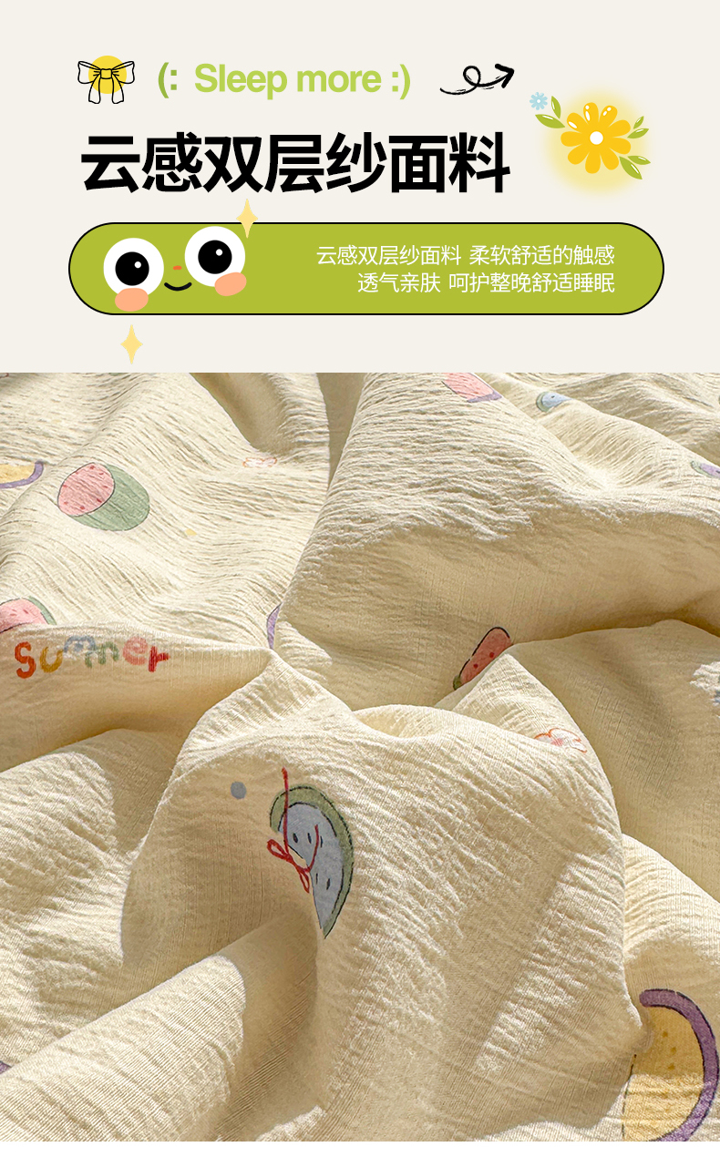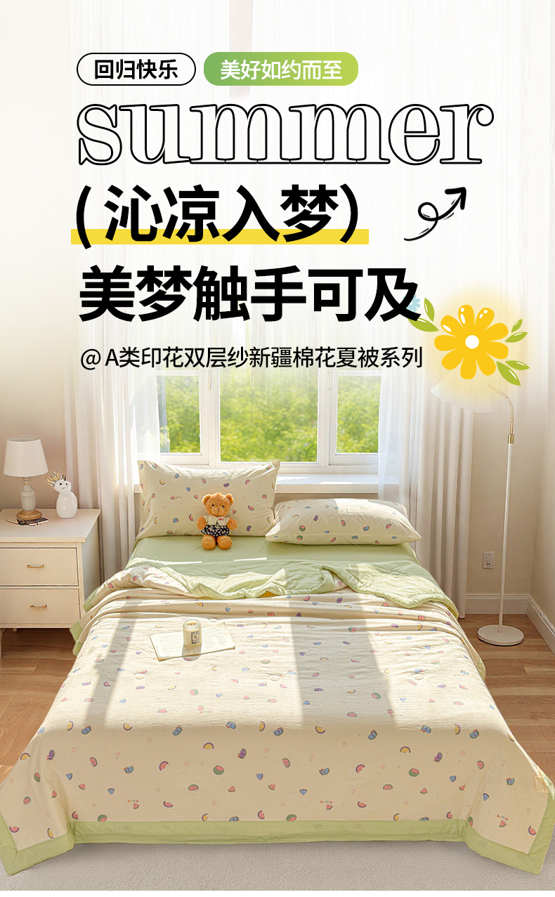 • 91家纺网 家纺一手货源 找家纺 晓时候 2026双层纱印花夏被四件套新疆棉花被可机洗夏凉被空调被夏季被子 缤纷水果