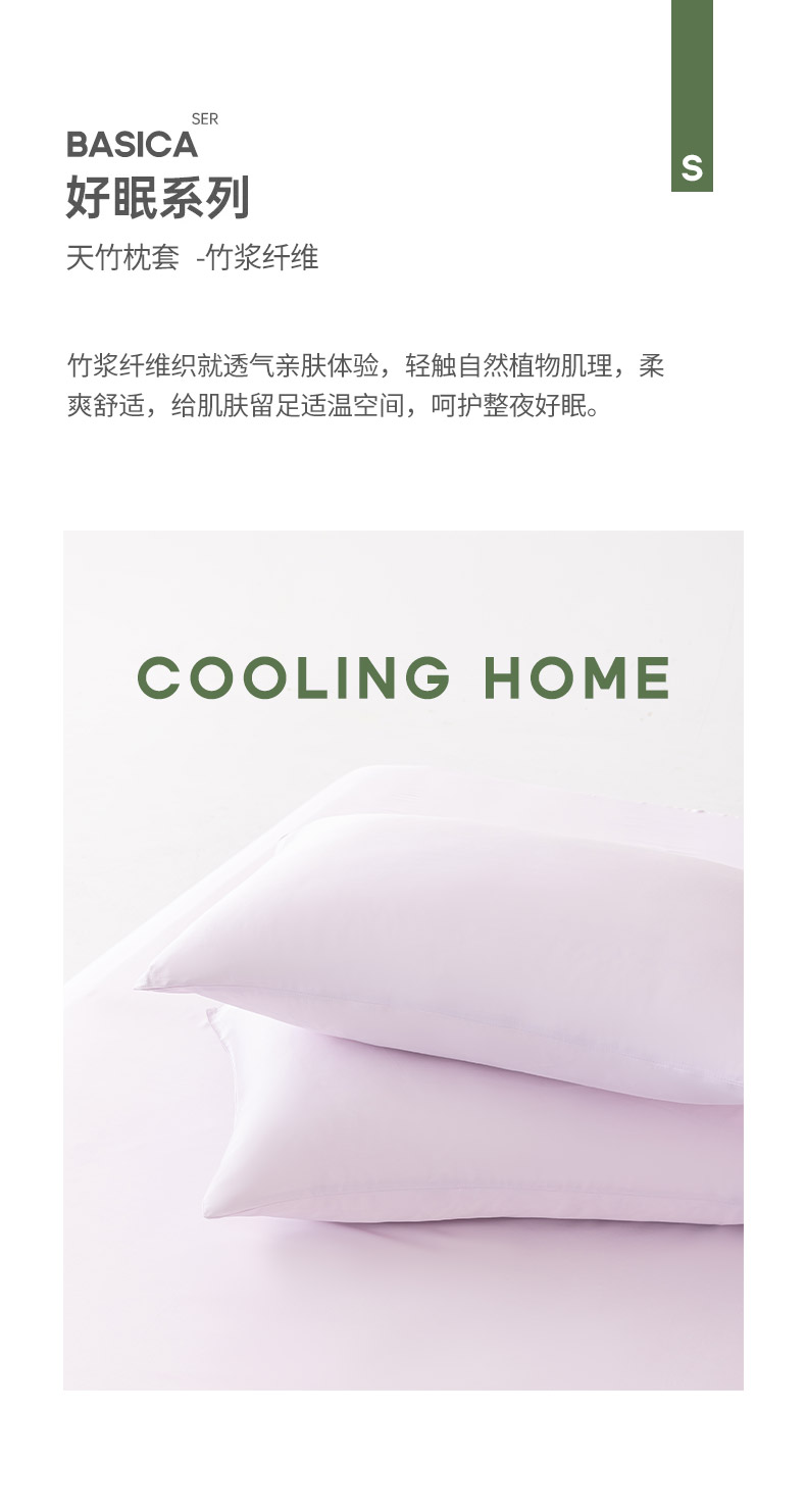 (总)轩和家居 2026新款竹浆纤维纯色单枕套系列,淡绿,淡紫,奶咖,奇异莓,软玉,天蓝,甜紫,椰灰