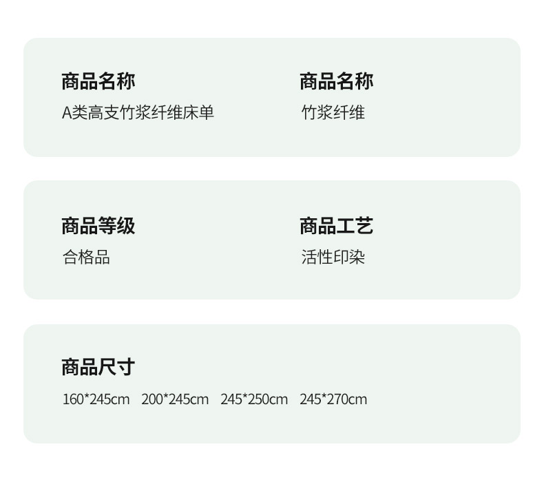 商品名称:轩和家居 2026新款竹浆纤维纯色单品床单系列 淡绿