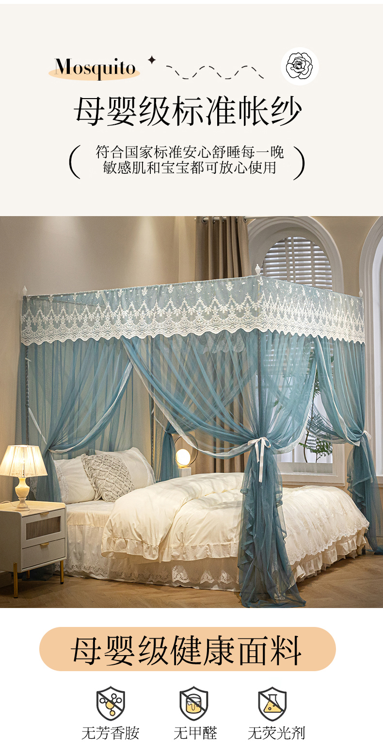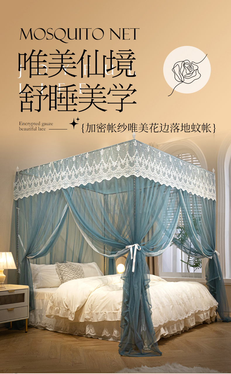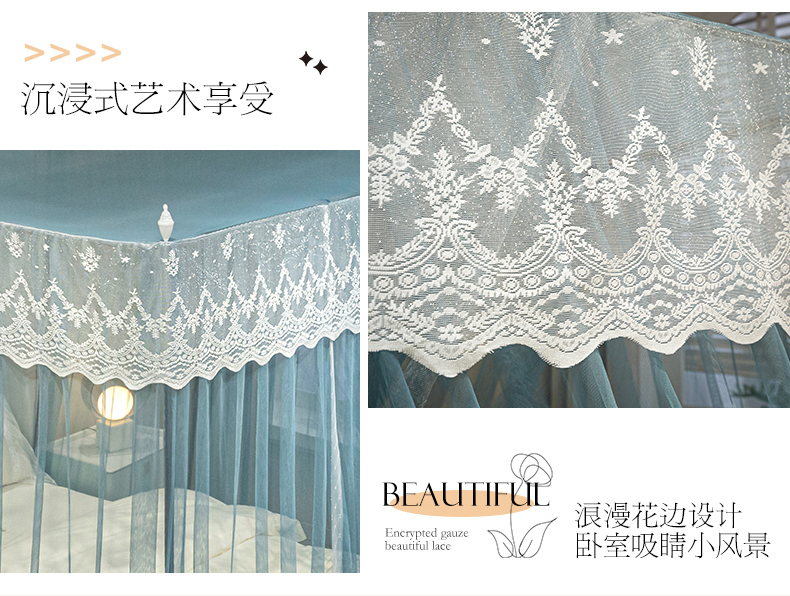 当前位置: 91家纺网 > 商品网购 > 床上用品 > 蚊帐 > 宫廷蚊帐 > 永旺家纺 2026新款加密帐纱唯美花边宫廷蚊帐-凤羽 天蓝
