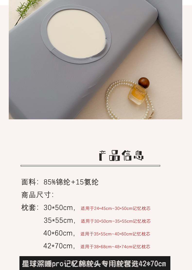 • 91家纺网 家纺一手货源 找家纺 百寐 2026新款夏季凉感冰皮星球深睡pro枕芯42*70保护套锦氨枕套纯色奶油色 冰皮枕套-松烟灰