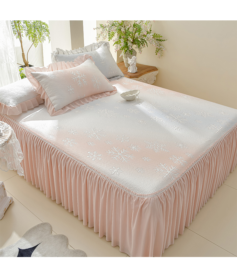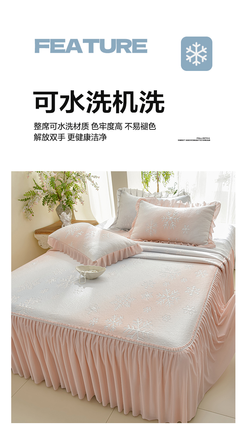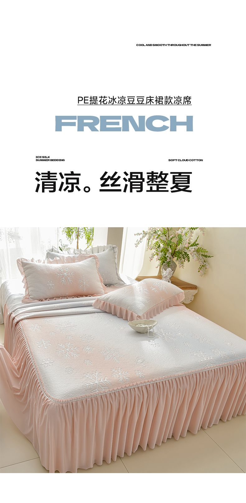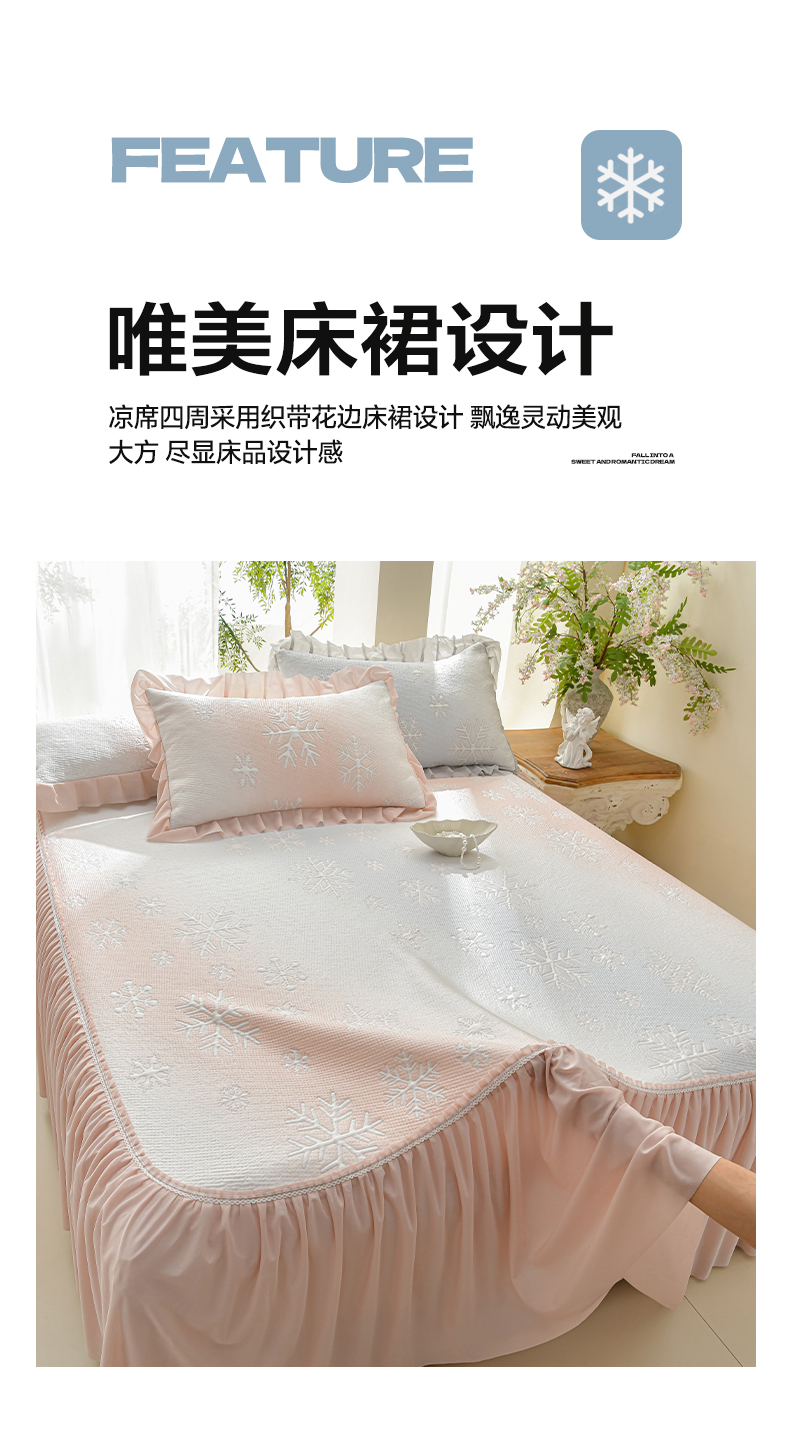 商品名称:绘萱家居 2026春夏新款530克PE100%提花冰凉豆豆床裙款凉席席子空调软席 渐变雪花-粉