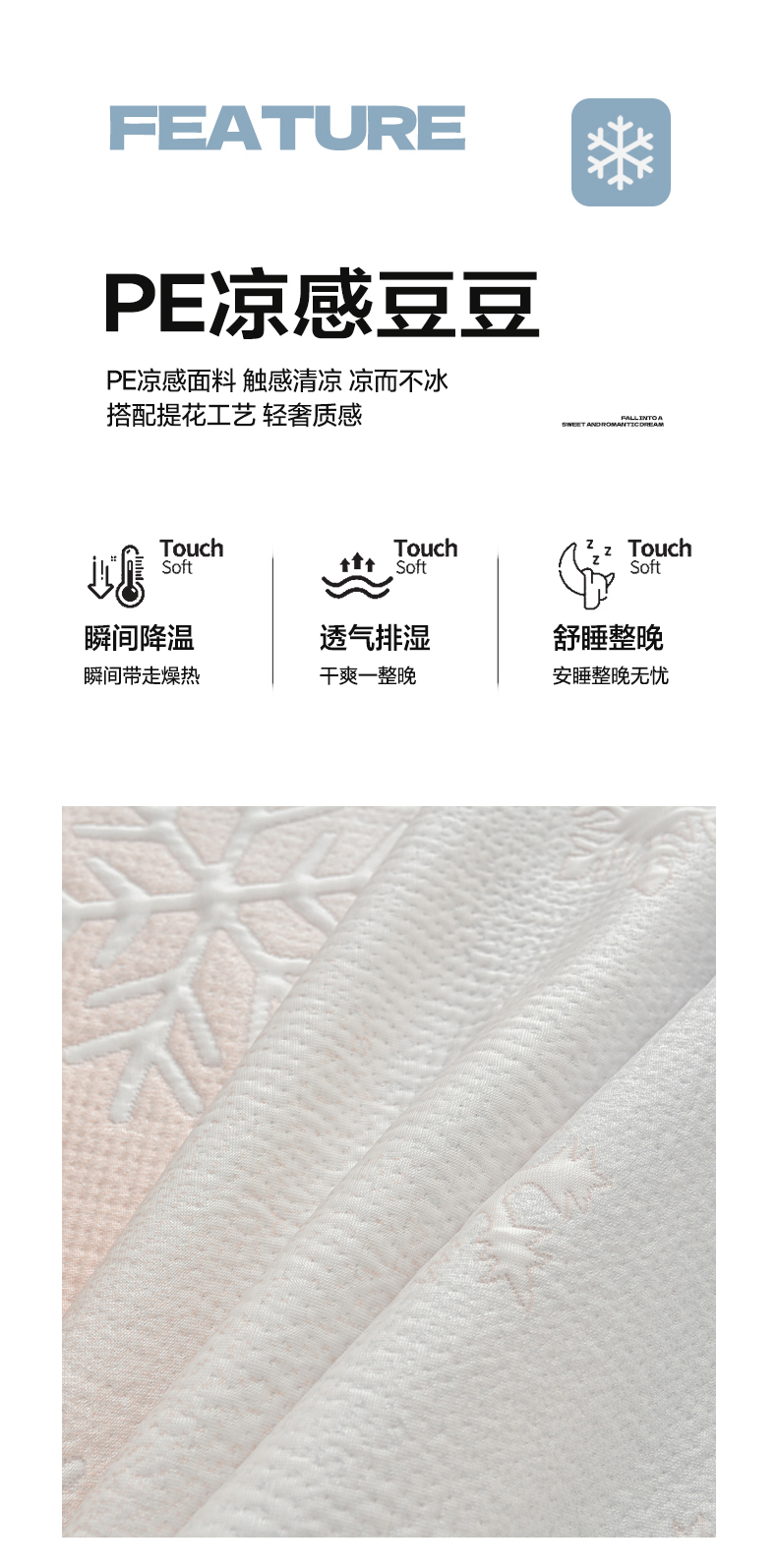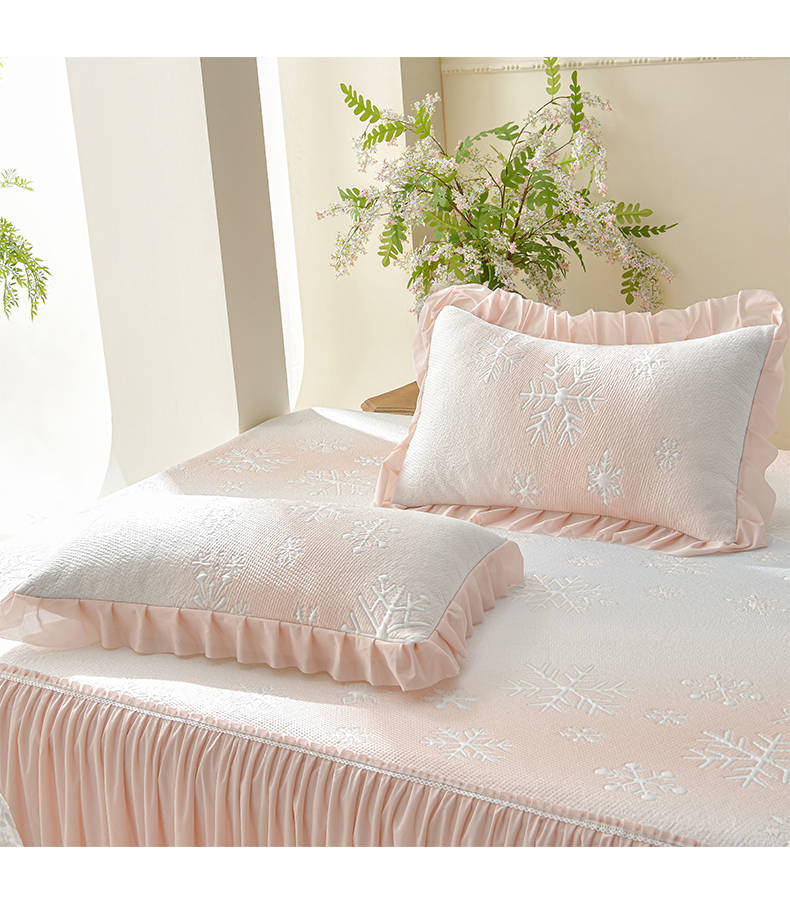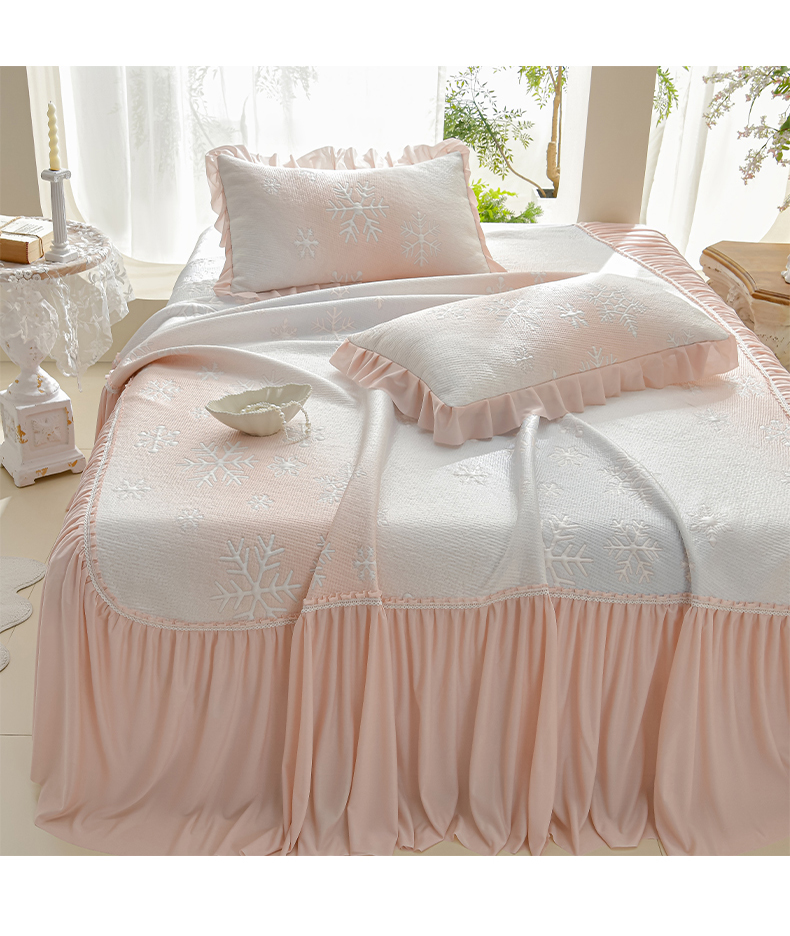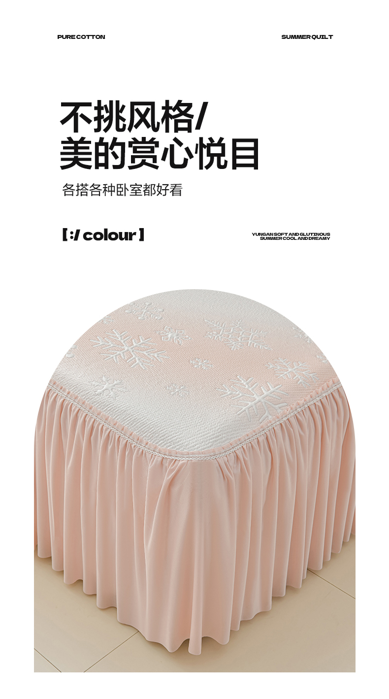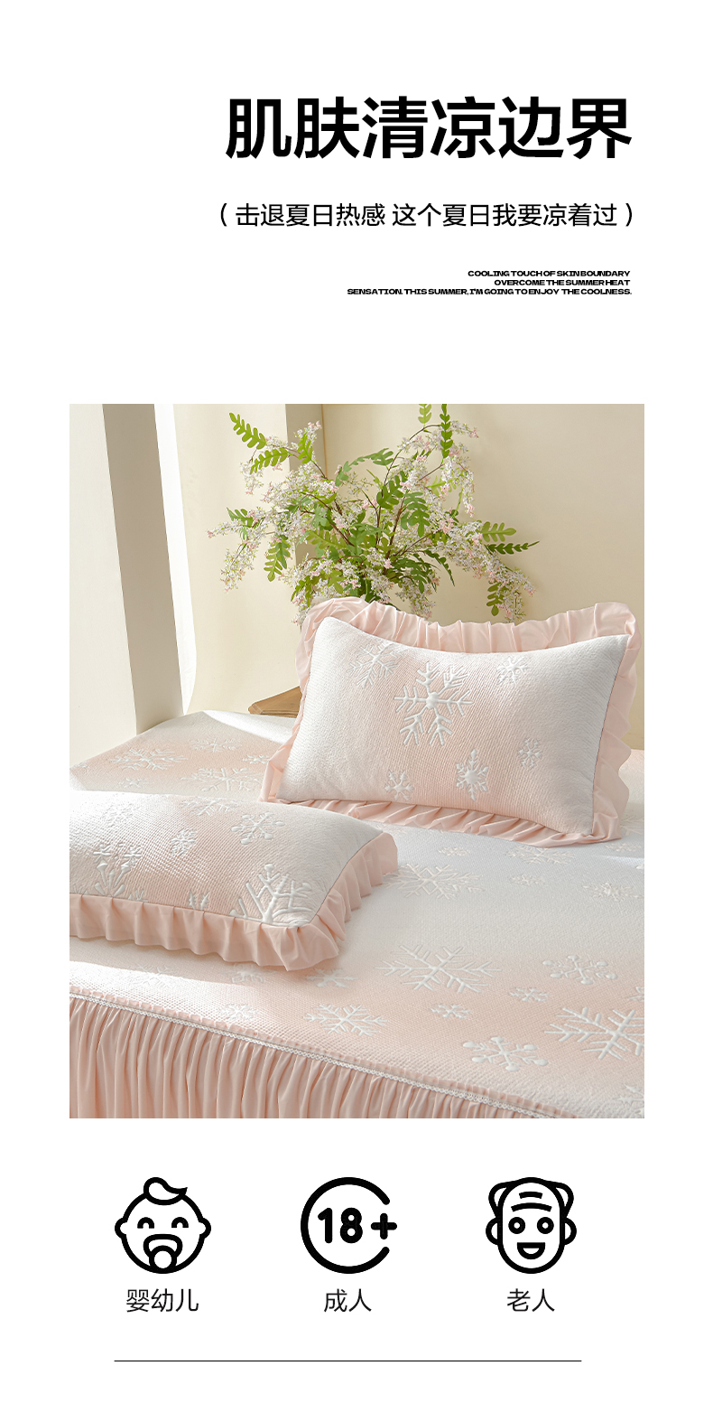 商品名称:绘萱家居 2026春夏新款530克PE100%提花冰凉豆豆床裙款凉席席子空调软席 渐变雪花-粉