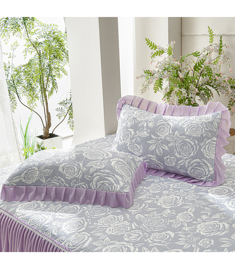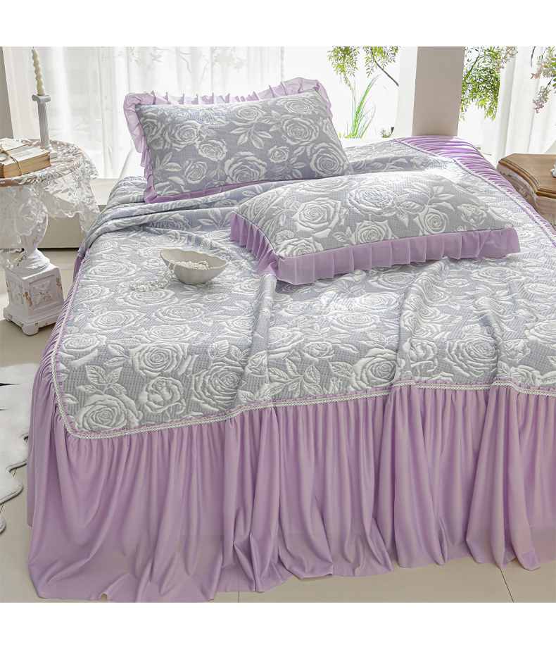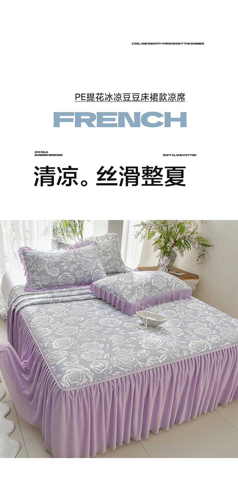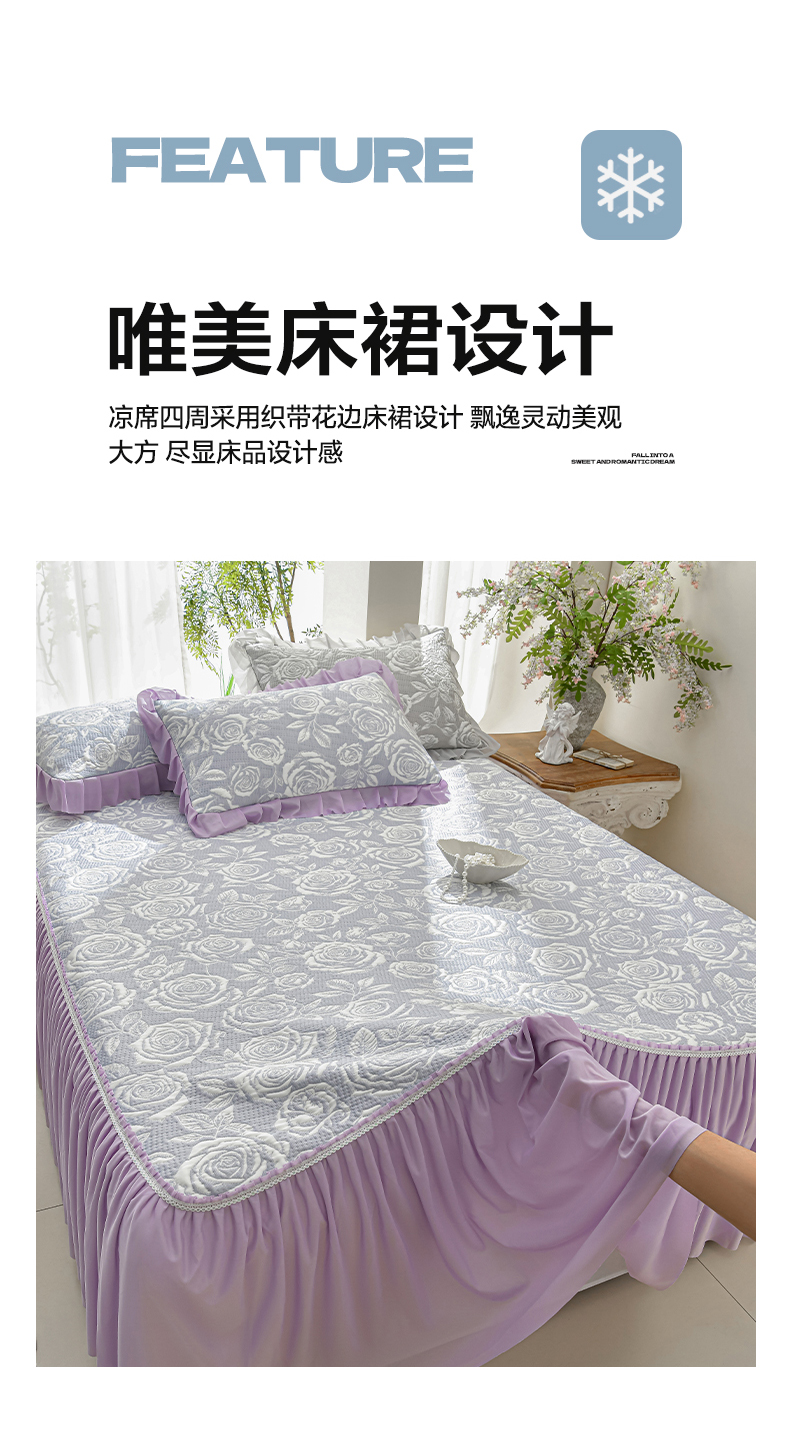 绘萱家居 2026春夏新款530克PE100%提花冰凉豆豆床裙款凉席席子空调软席 玫瑰花香-紫