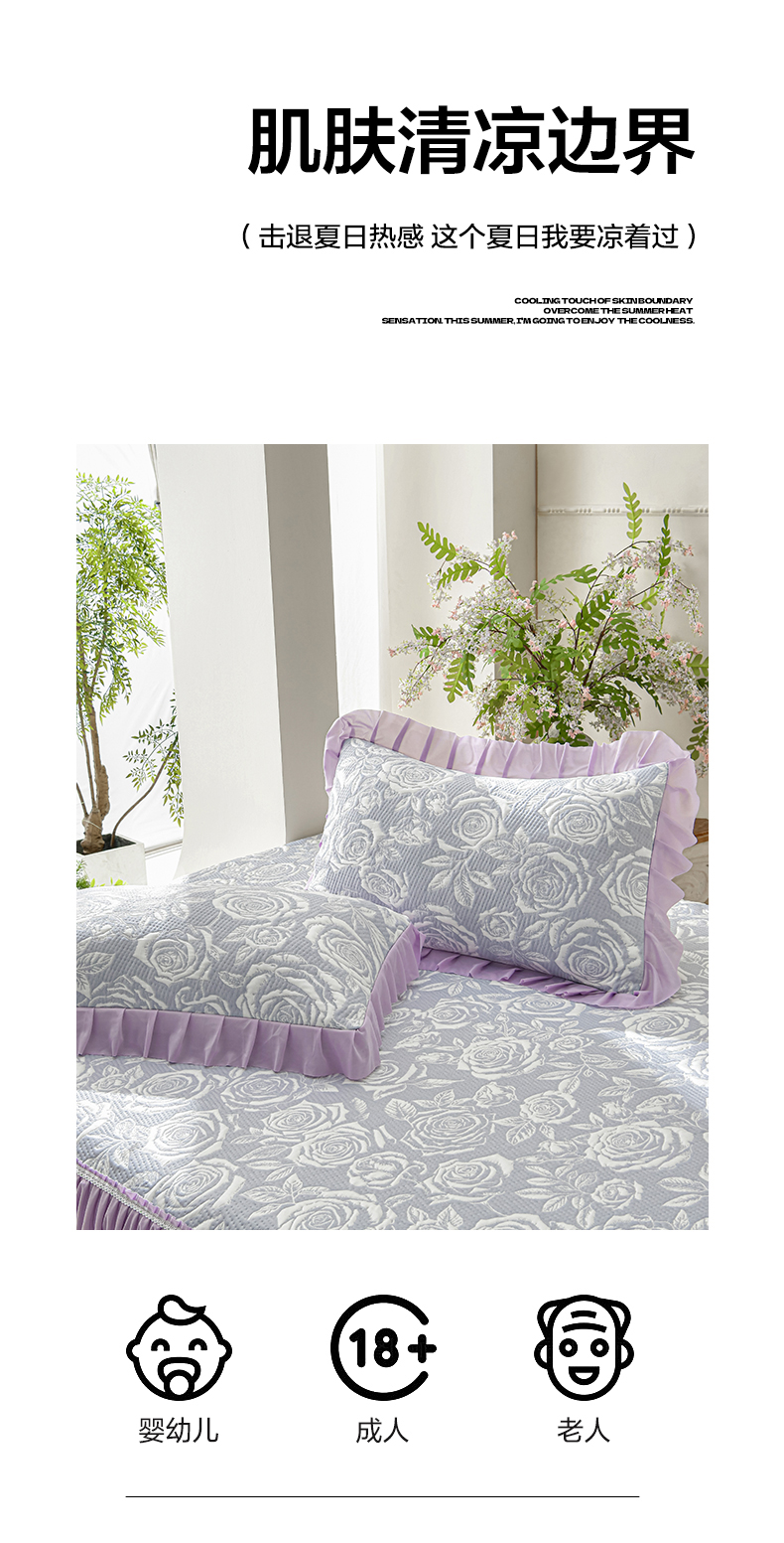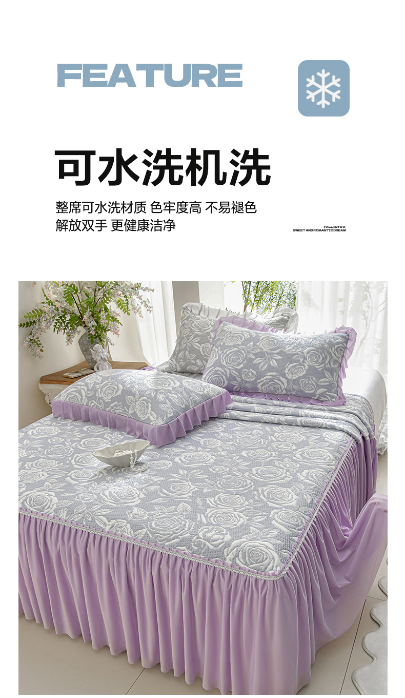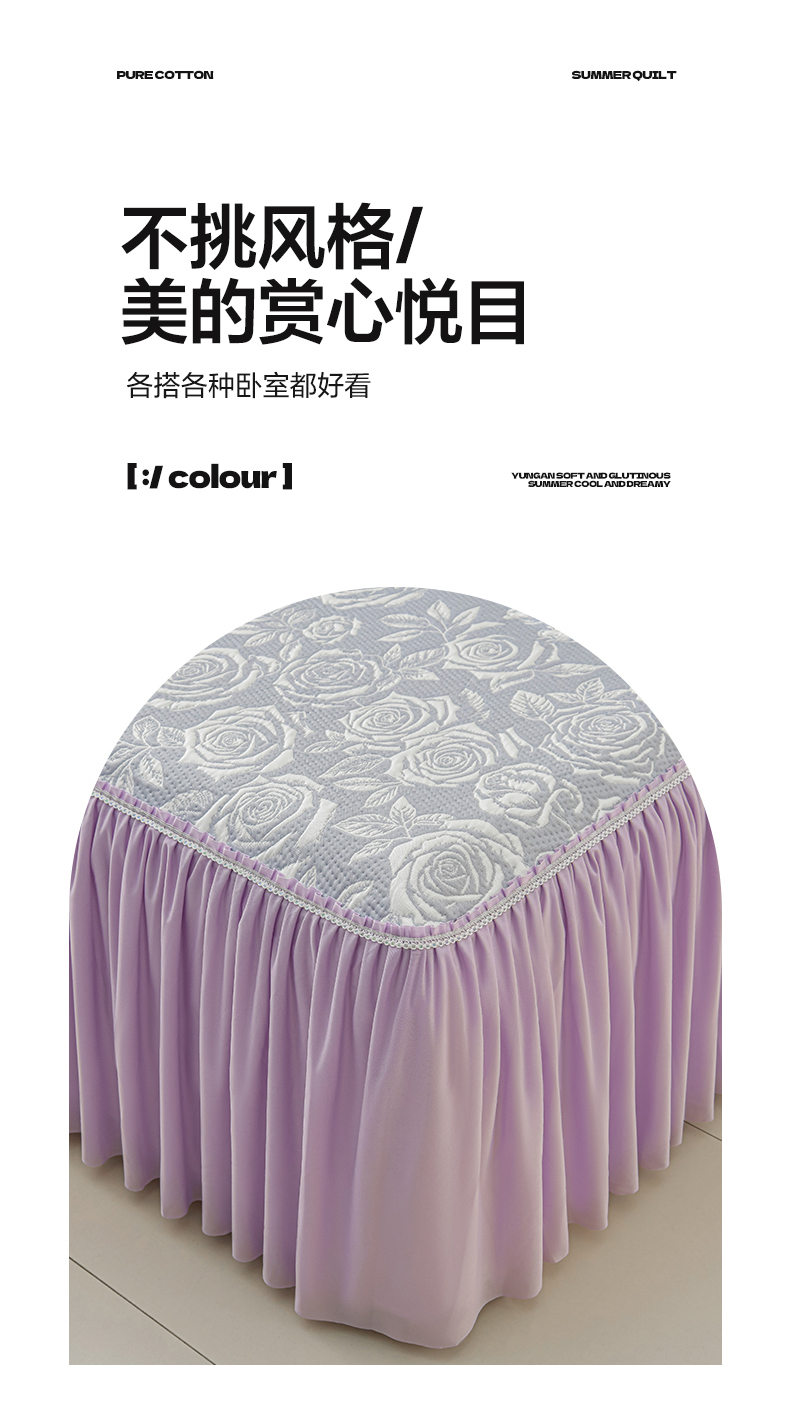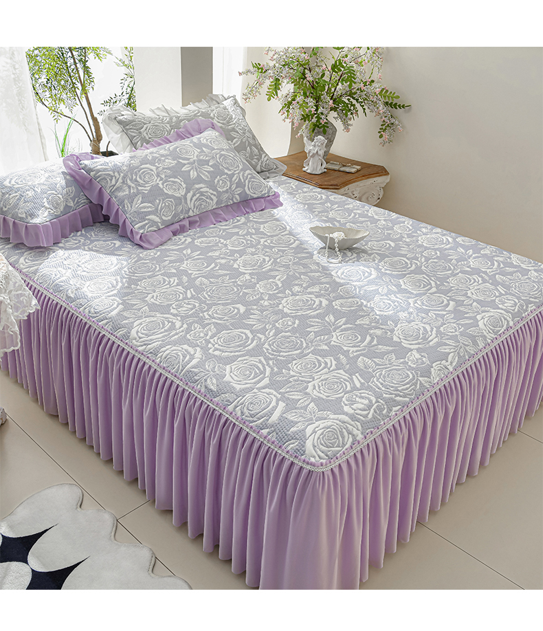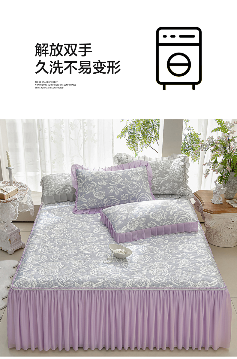 商品名称:绘萱家居 2026春夏新款530克PE100%提花冰凉豆豆床裙款凉席席子空调软席 玫瑰花香-紫