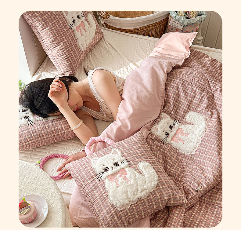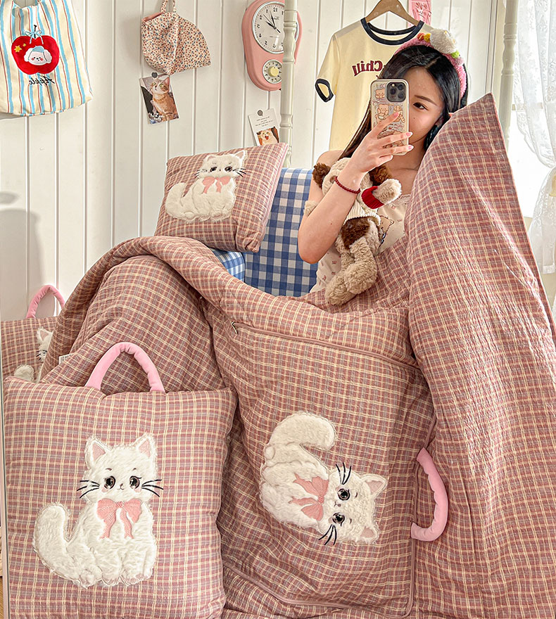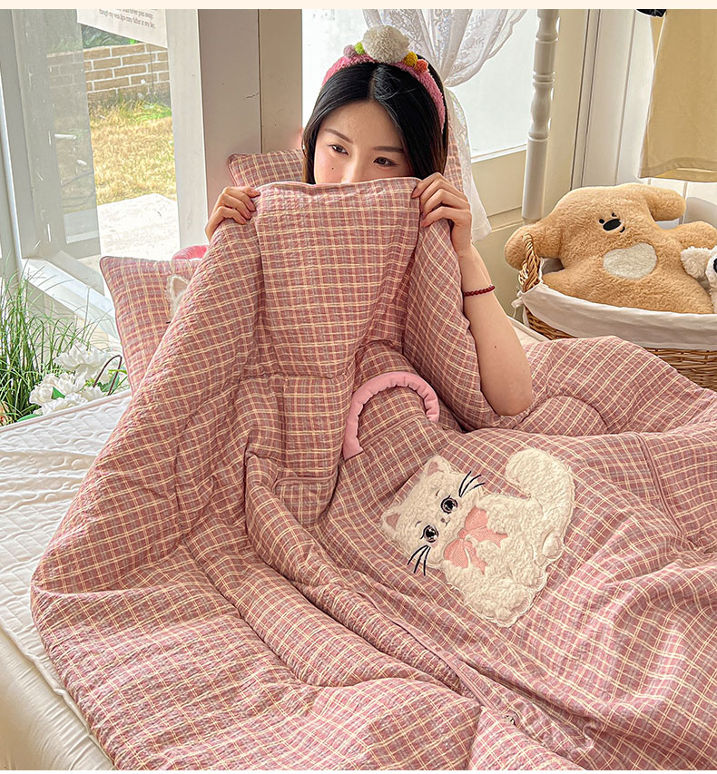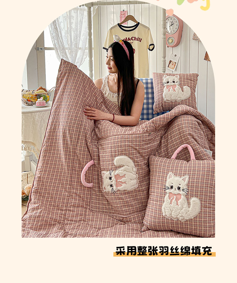 (总)番茄+ 2026春夏新款色织全棉纯棉水洗棉毛巾绣抱枕被,可爱黑猫,彩色小马,波点腊肠狗,苹果企鹅-黑格,苹果企鹅-咖格,组合图仅供展示不可下单