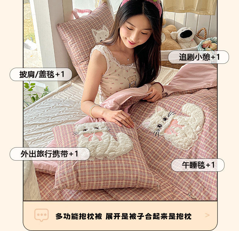 (总)番茄+ 2026新款ins风猫咪抱枕被,奶芙猫-波点紫,奶芙猫-波点蓝,奶芙猫-波点咖,奶芙猫—海莉红,奶芙猫-碎花蓝,组合图仅供参考不可下单