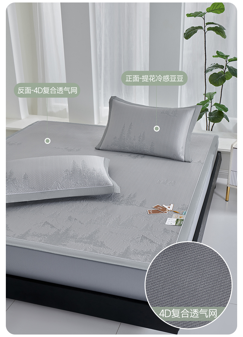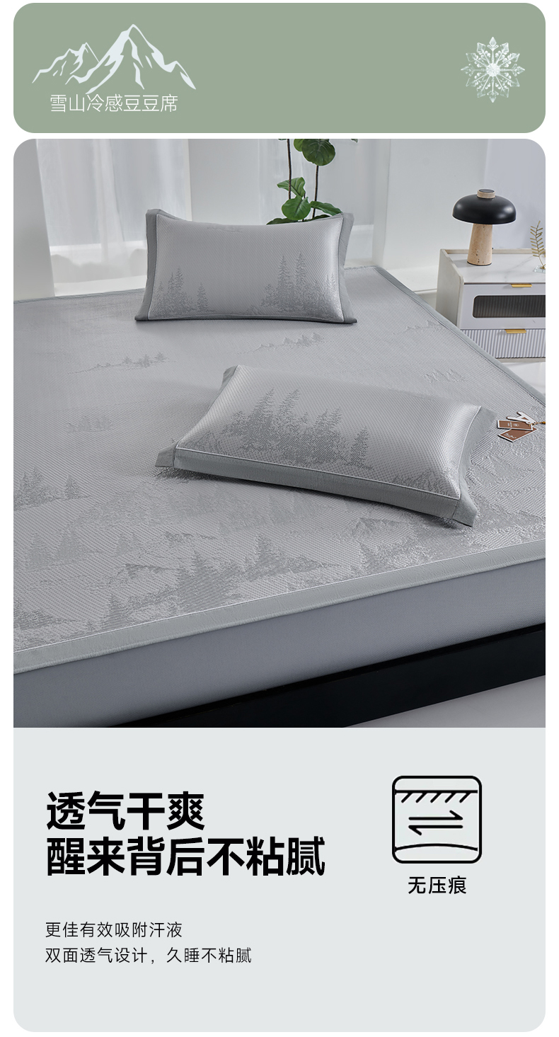 (总)小牛席业 2026新款雪山冷感豆豆席系列凉席藤席冰藤席竹席空调席草席冰丝席豆豆席乳胶席三件套,灰色,粉色,蓝色,绿色