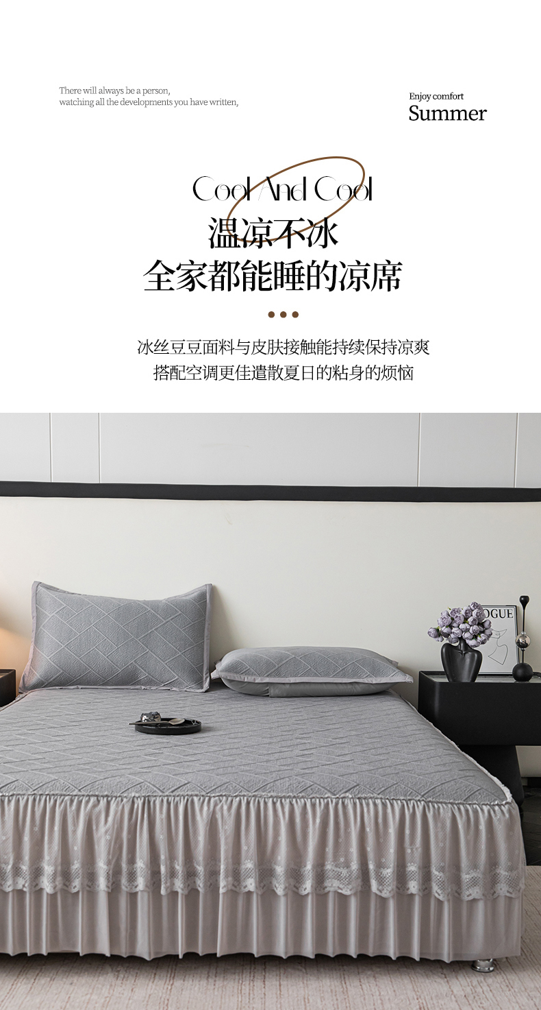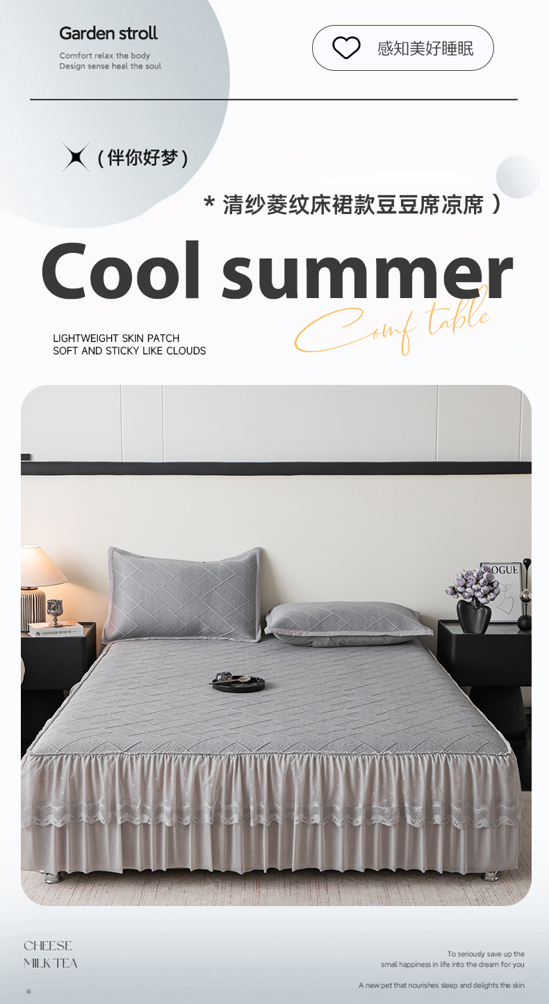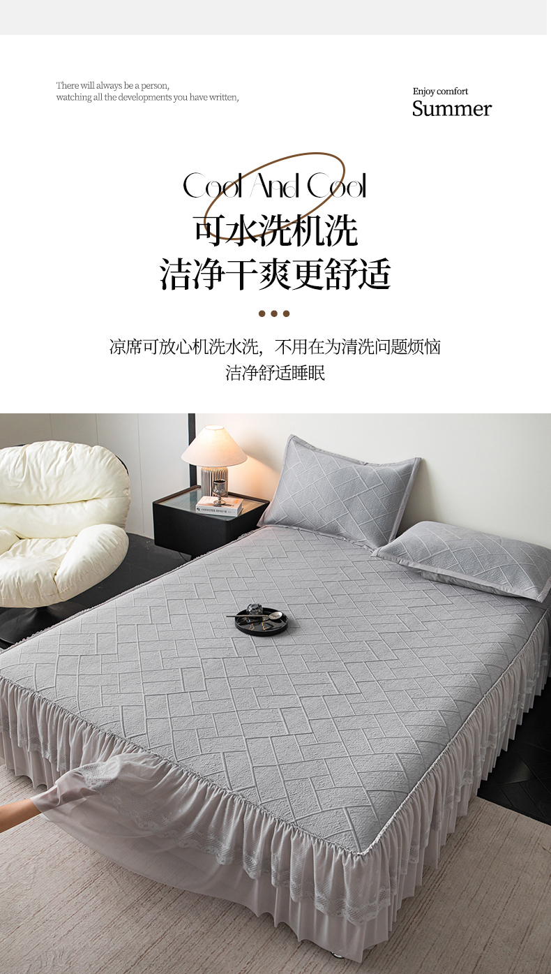 (总)栩裕纺织 2026新款清纱菱纹床裙款豆豆席凉席,樱花粉,薄荷绿,高级灰,卡其色,蝴蝶结粉,蝴蝶结灰,蝴蝶结咖,蝴蝶结蓝,蝴蝶结绿