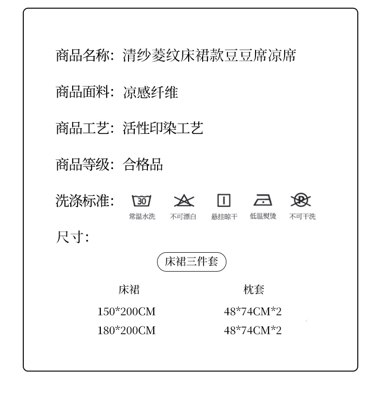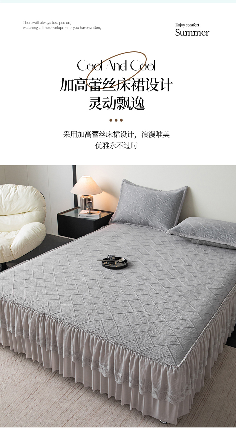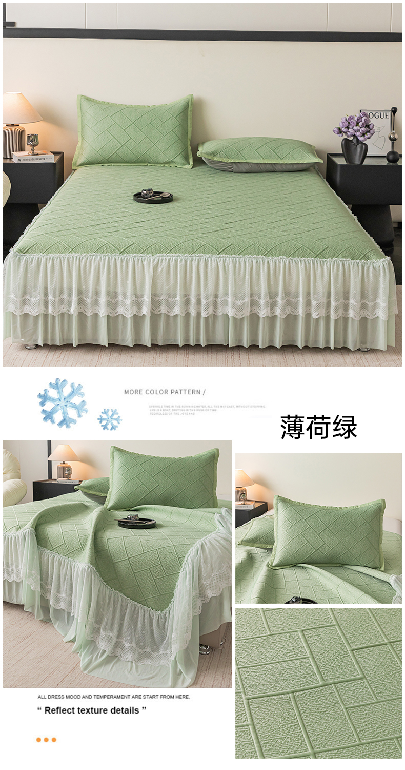 (总)栩裕纺织 2026新款清纱菱纹床裙款豆豆席凉席,樱花粉,薄荷绿,高级灰,卡其色,蝴蝶结粉,蝴蝶结灰,蝴蝶结咖,蝴蝶结蓝,蝴蝶结绿