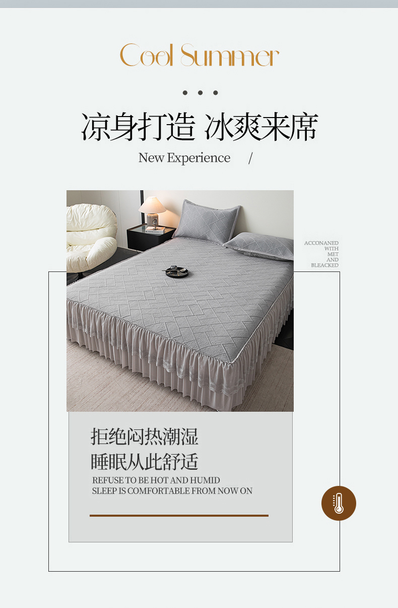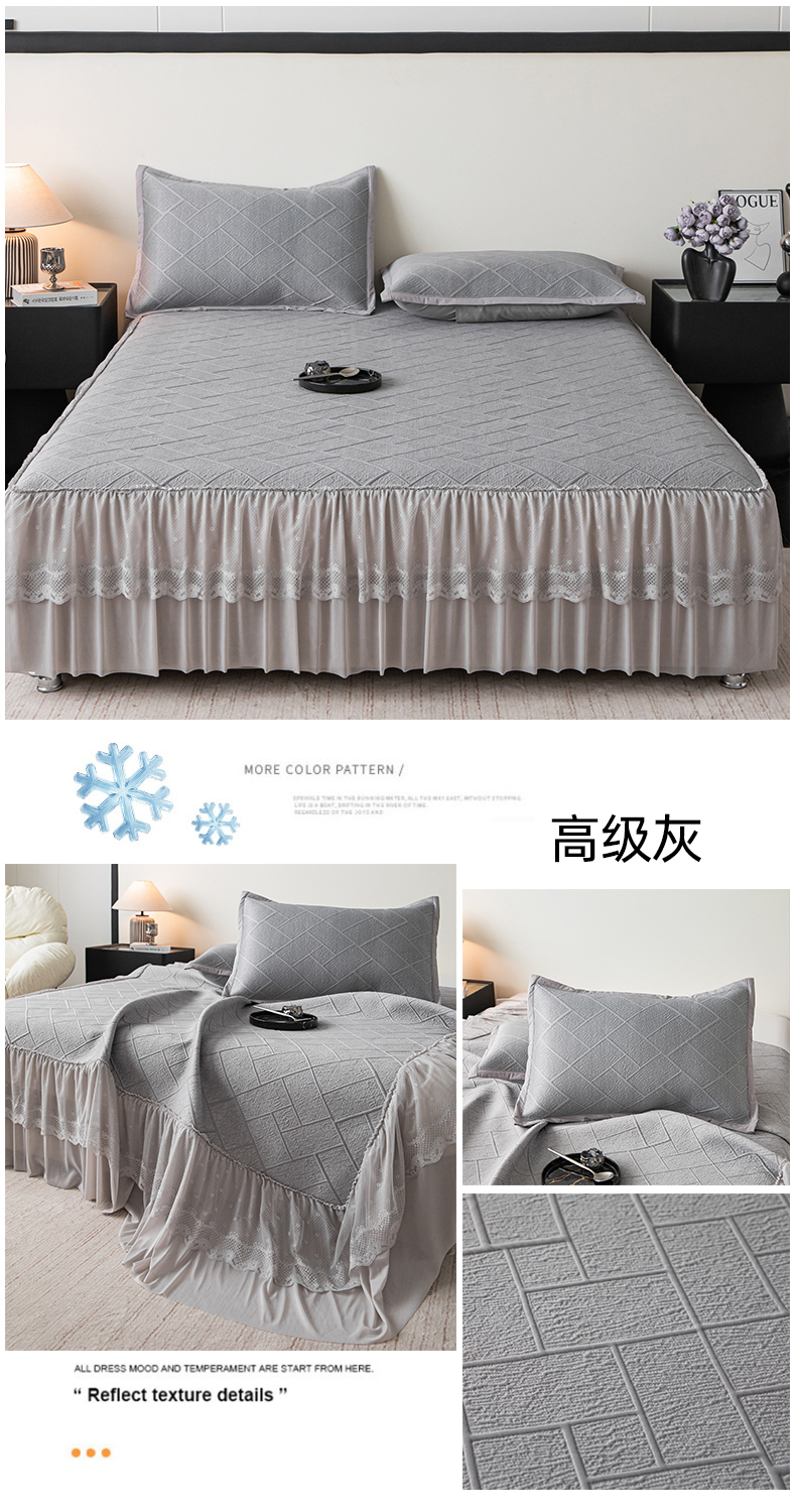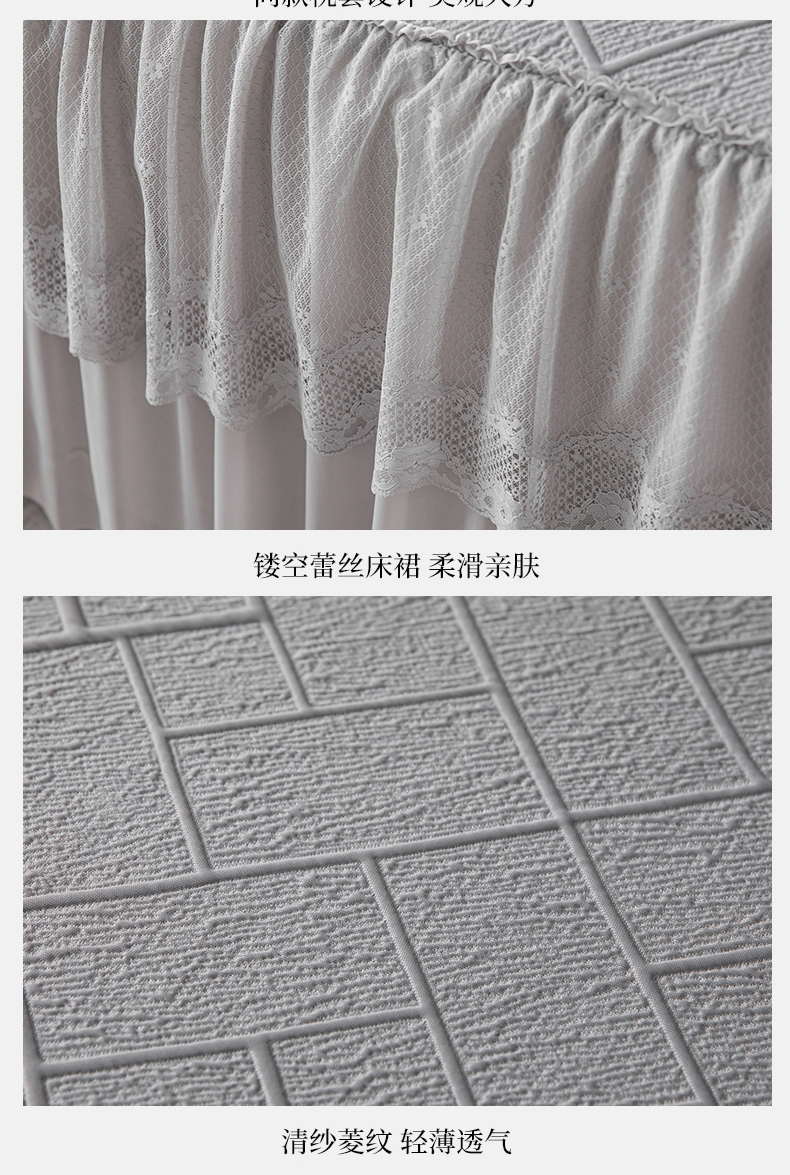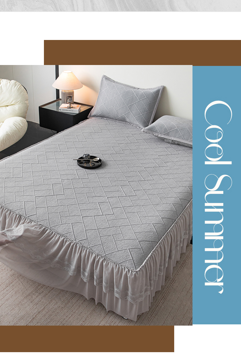 栩裕纺织 2026新款清纱菱纹床裙款豆豆席凉席 蝴蝶结灰