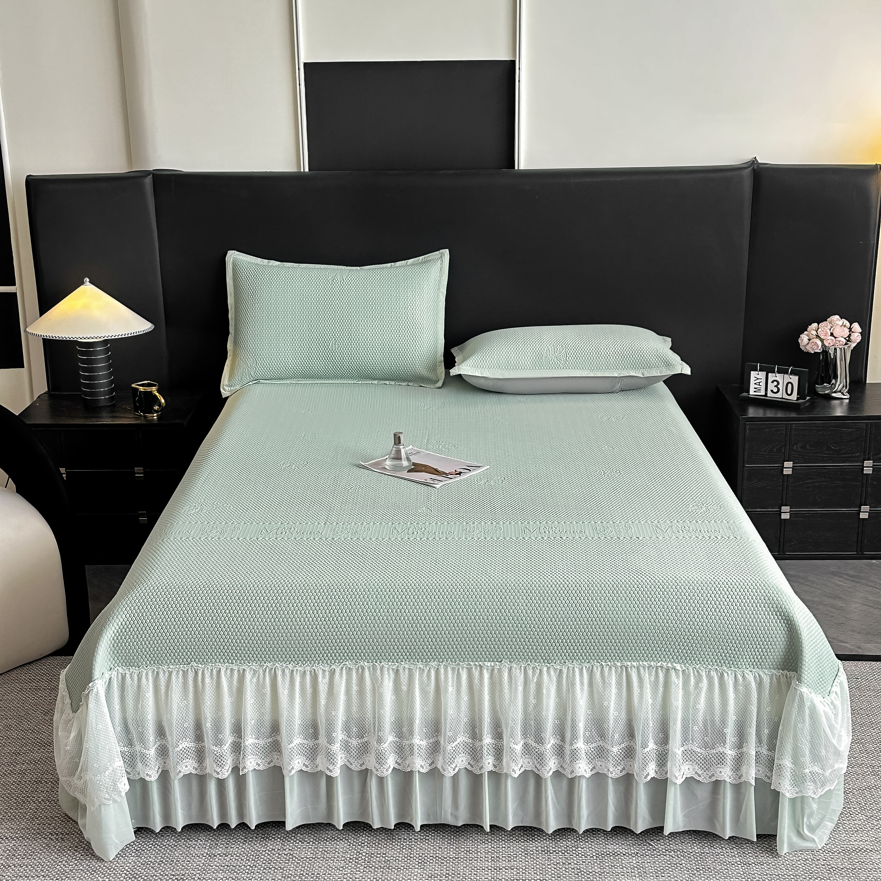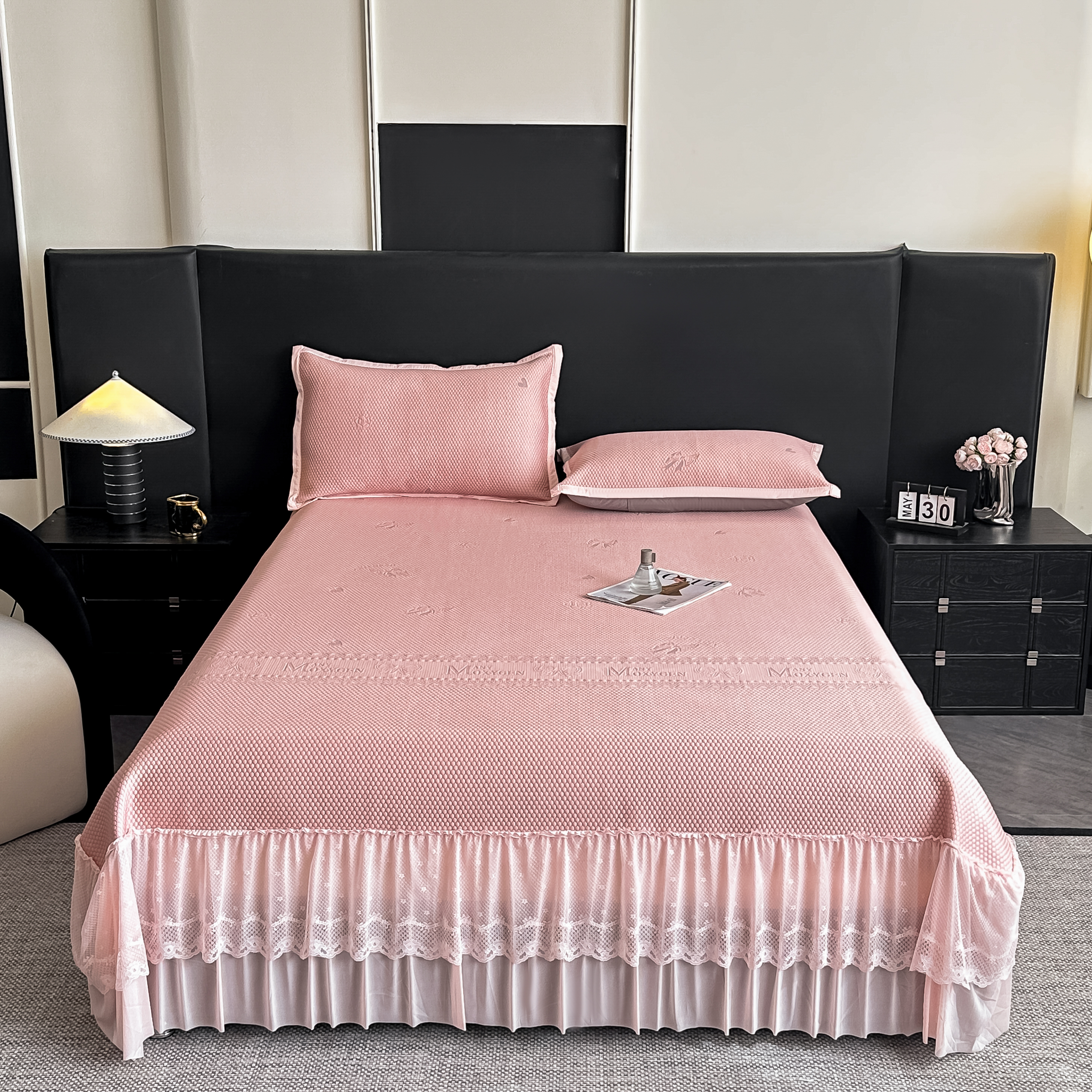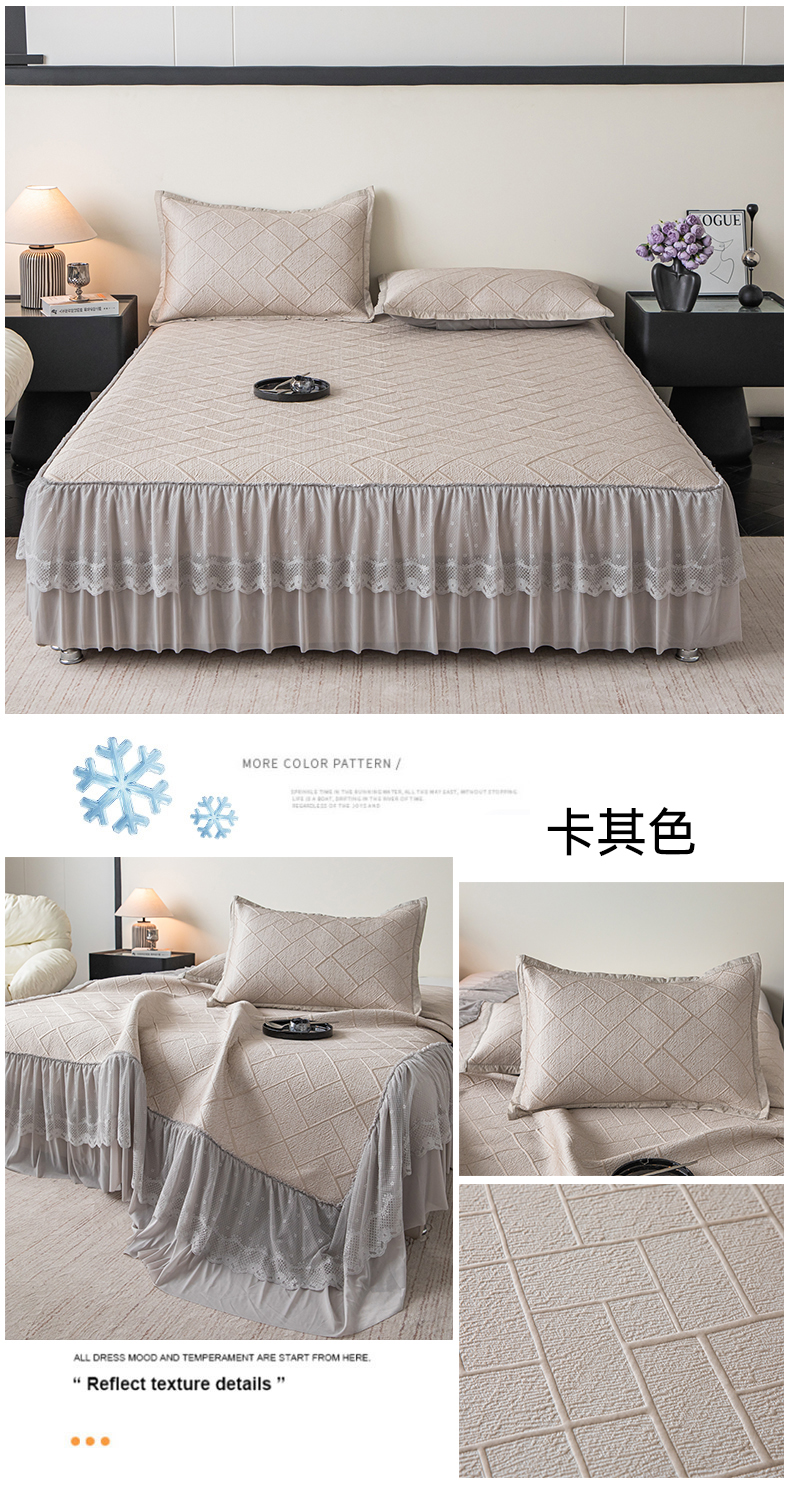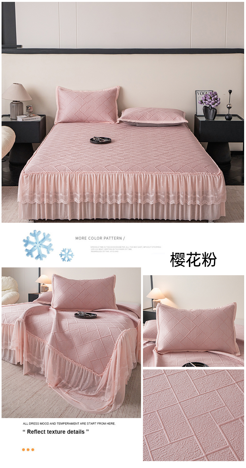 (总)栩裕纺织 2026新款全棉双层纱棉花边榻榻米炕盖款,波点粉,波点灰,波点绿,波点米,波点杏,波点紫,组合图仅供参考