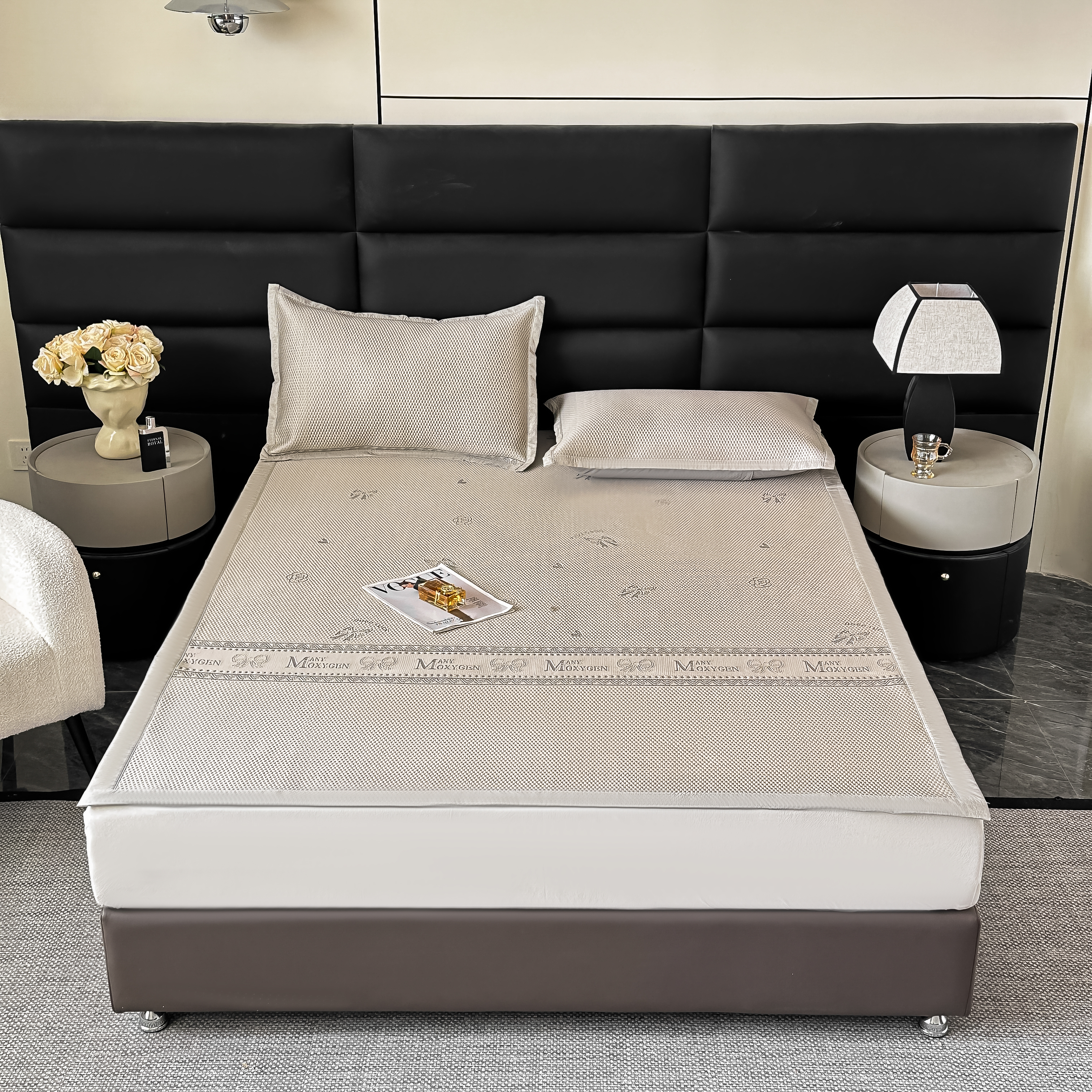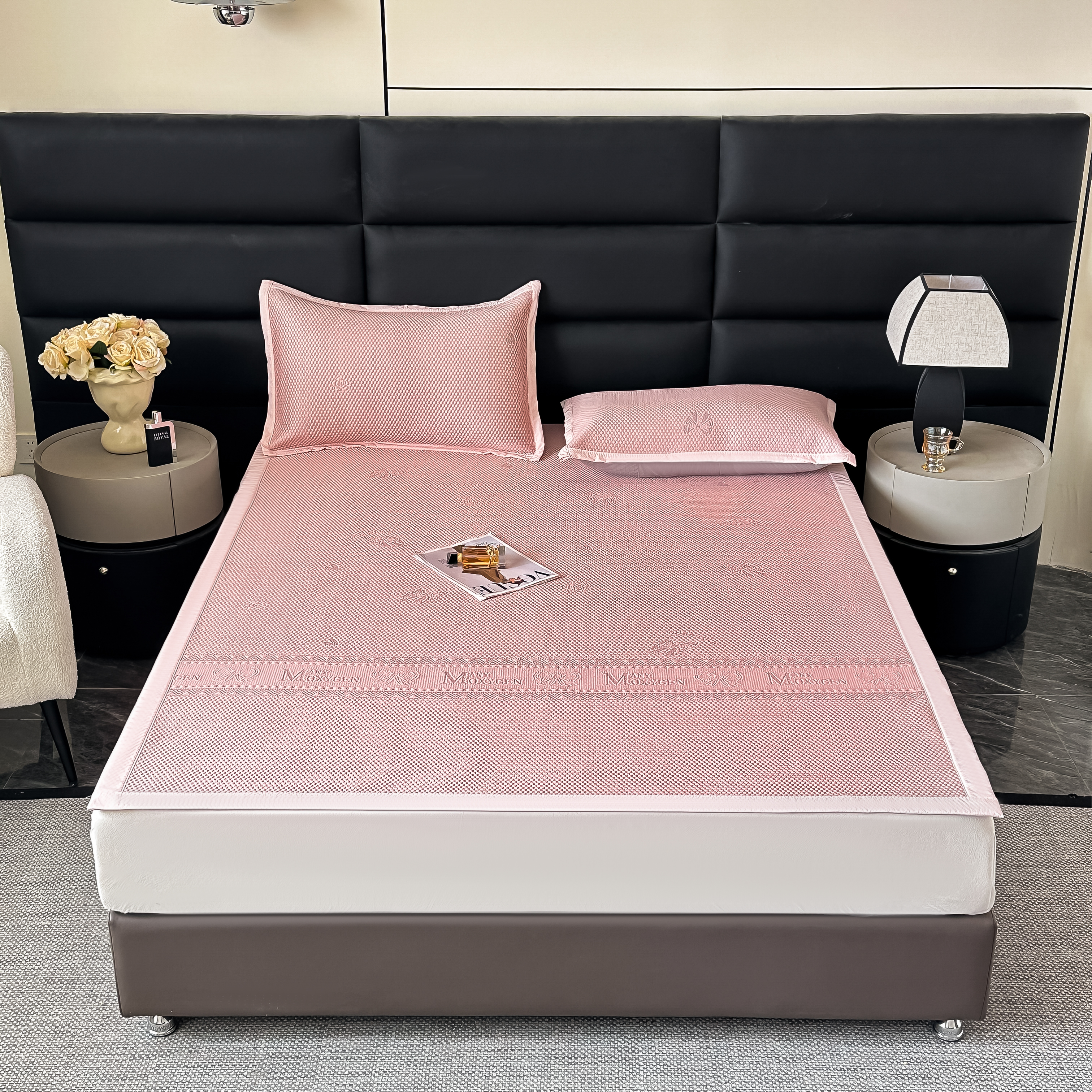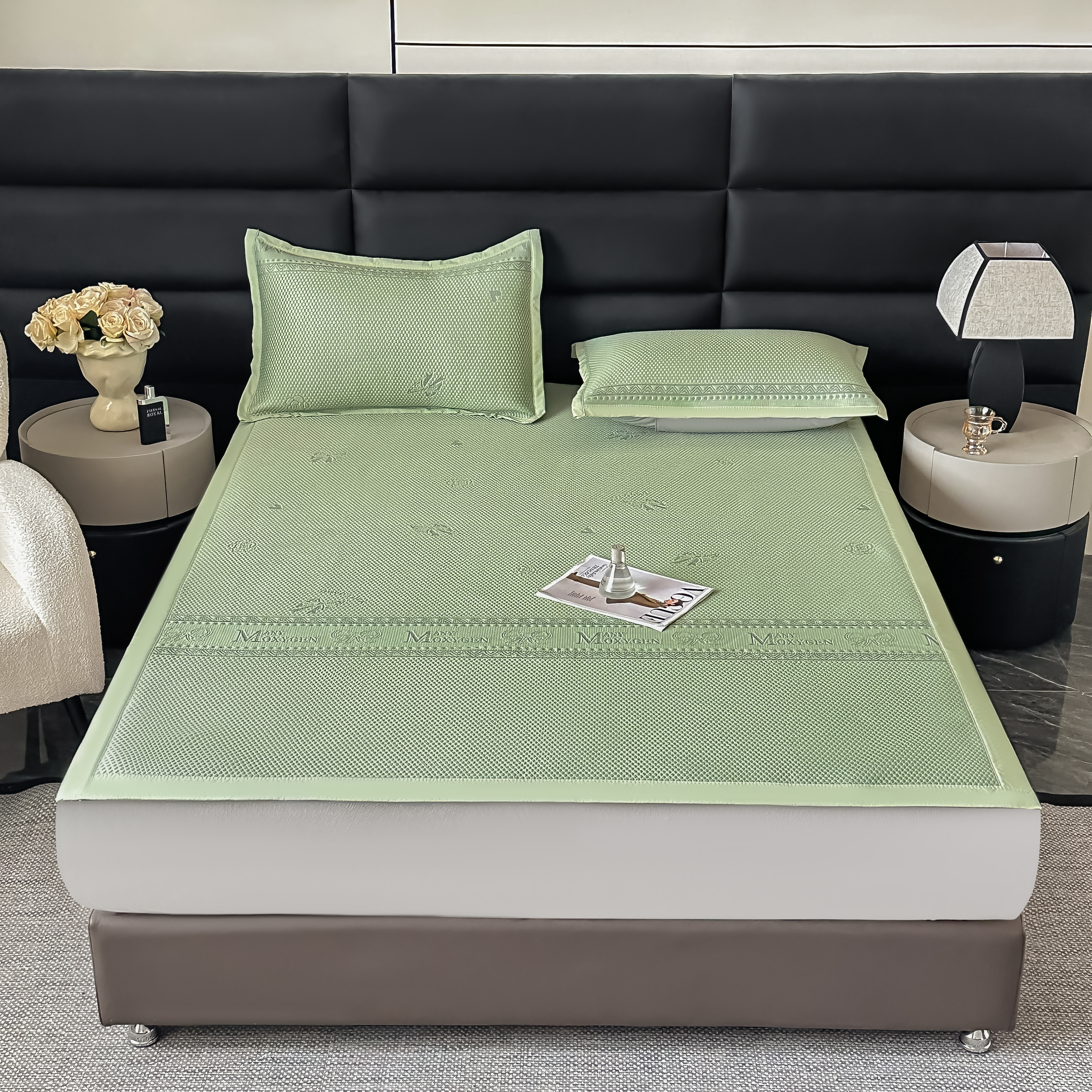 (总)栩裕纺织 2026新款仿牛皮凉席软席,红棕色,浅灰色,浅绿色,天蓝色
