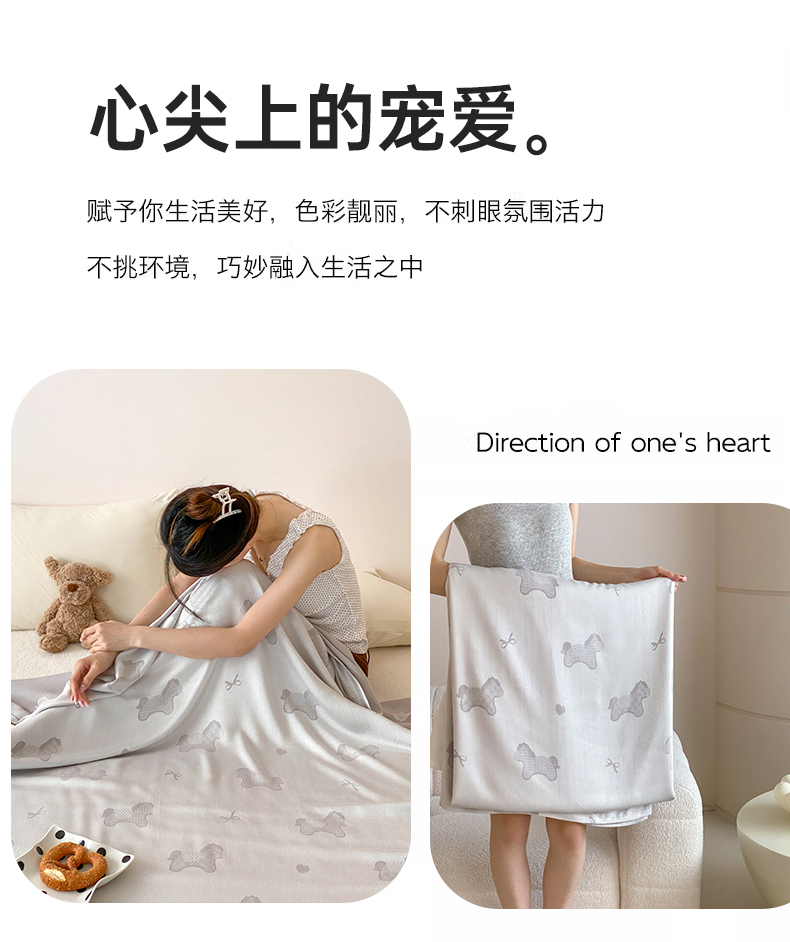 商品名称:麻依 2026新款竹纤维单层毛巾被盖毯夏凉被冷感毯 小马-灰色