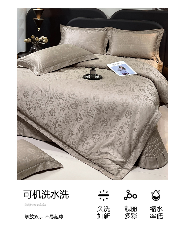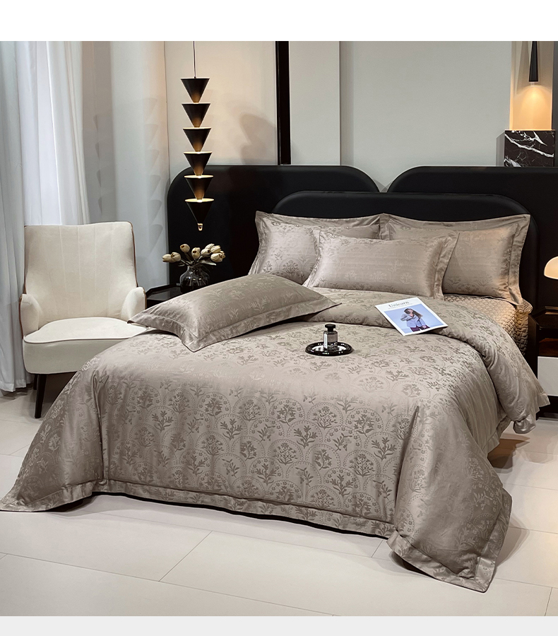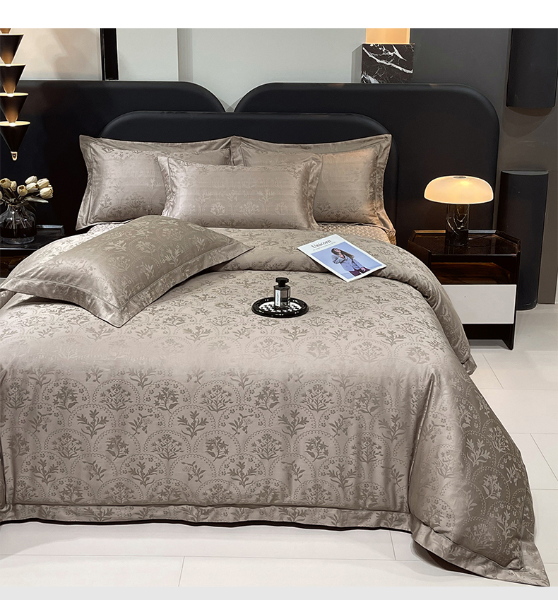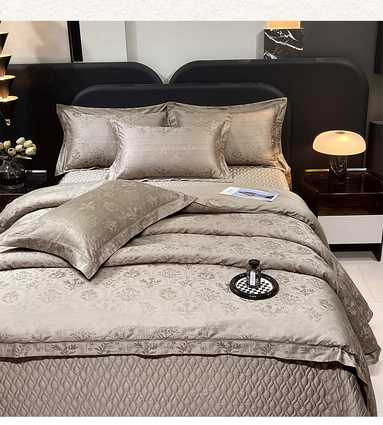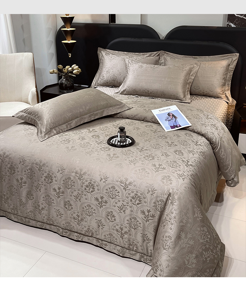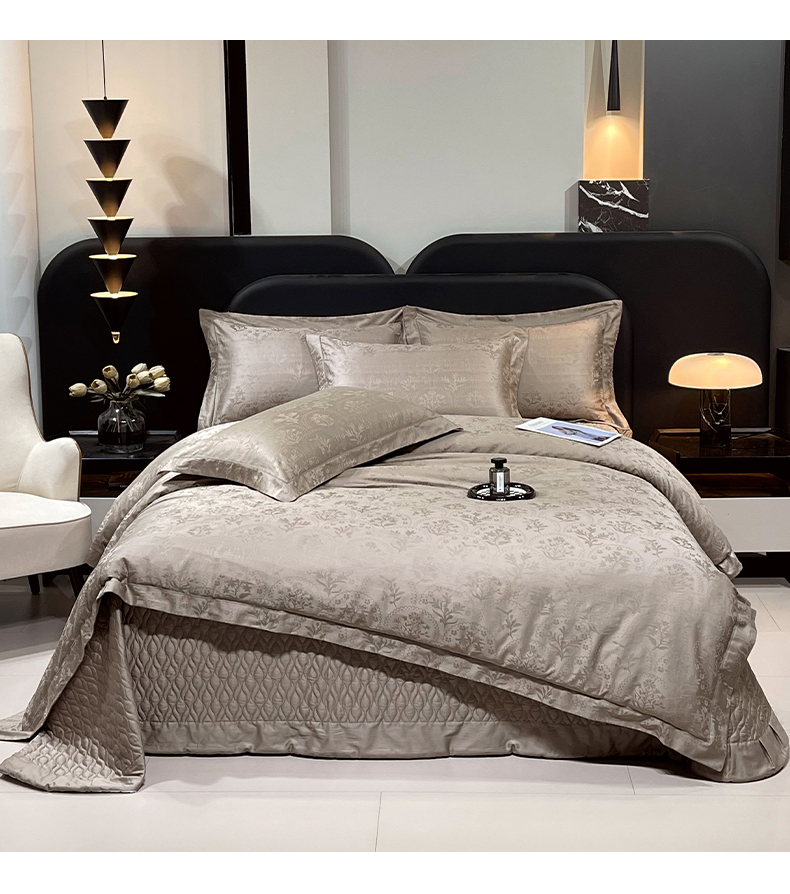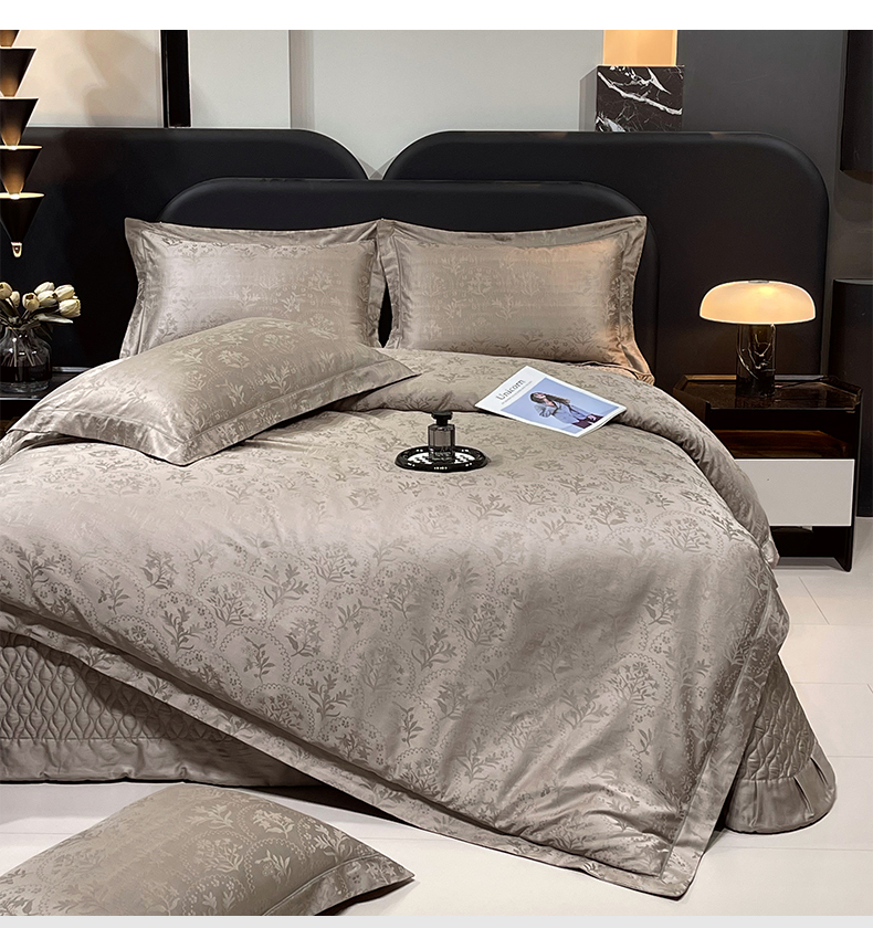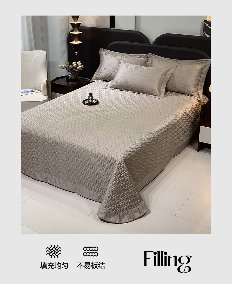 商品名称:畅畅家纺 2026新款高档100支长绒棉高定提花夹棉床盖纯色四件套 锦枝-咖