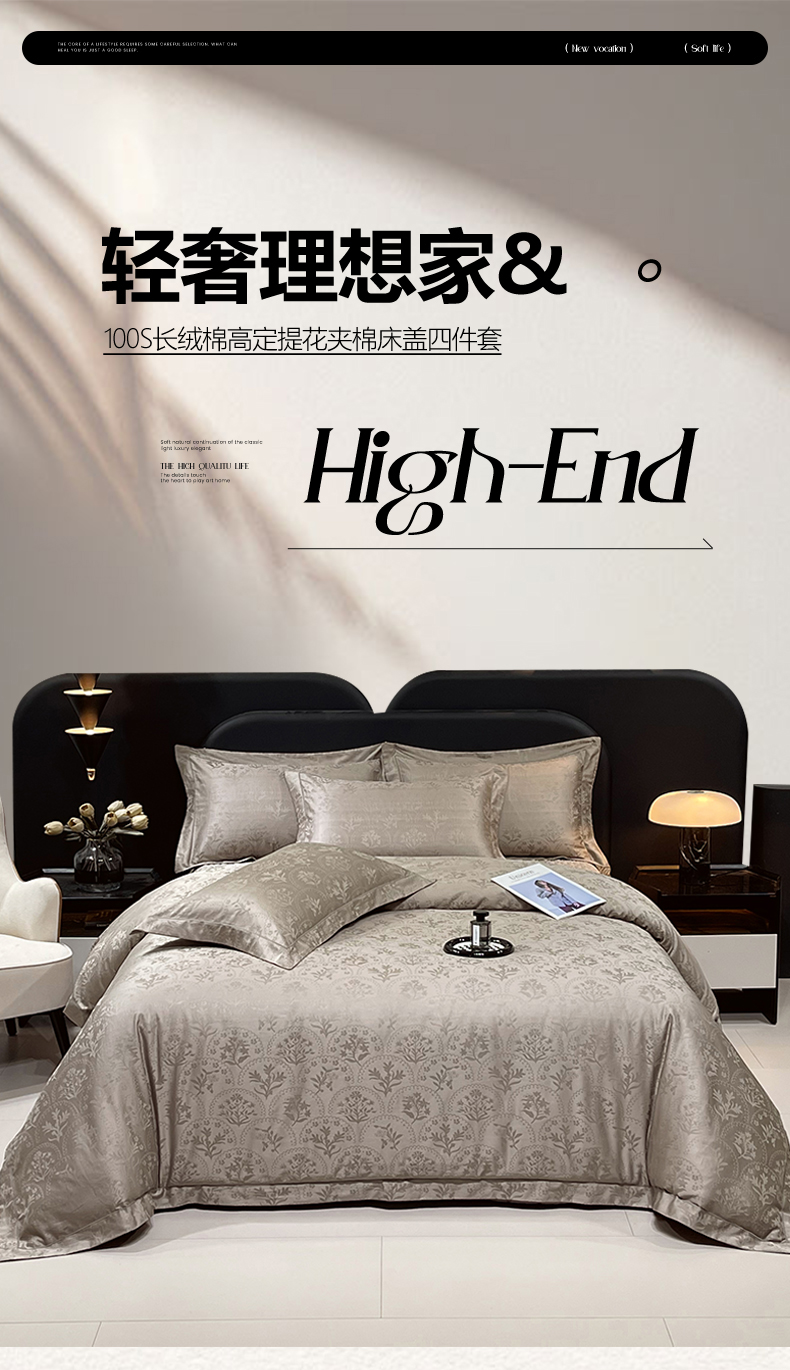 (总)畅畅家纺 2026新款高档100支长绒棉高定提花夹棉床盖纯色四件套,花屿间-兰,锦枝-咖,罗维娜-香槟,雅颂-粉,雅颂-灰