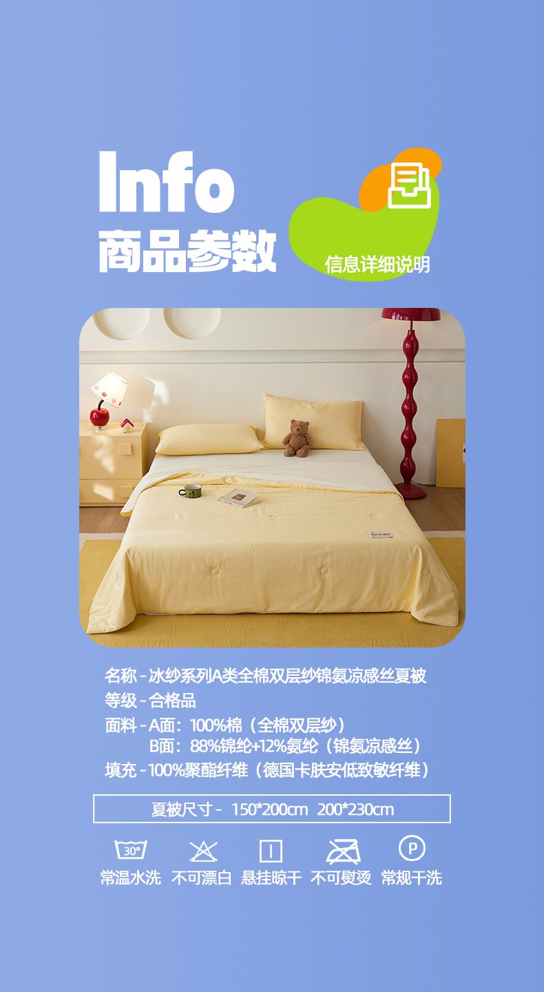 莱宁被业 2026新款冰纱系列全棉双层纱锦氨凉感丝夏被 组合图
